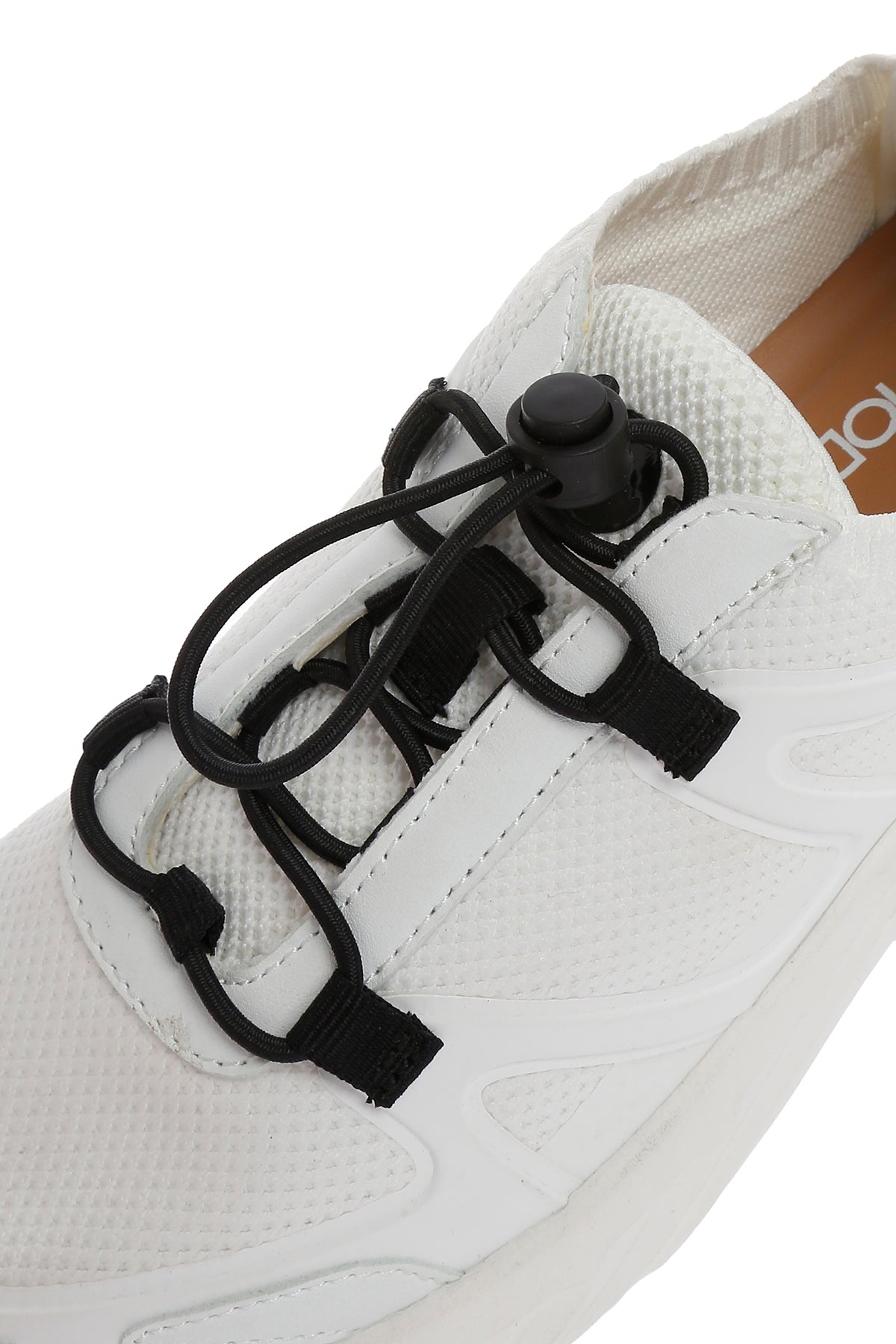 ACBC x DERİMOD Kadın Beyaz Bağcıklı Kalın Tabanlı Kumaş Sneaker