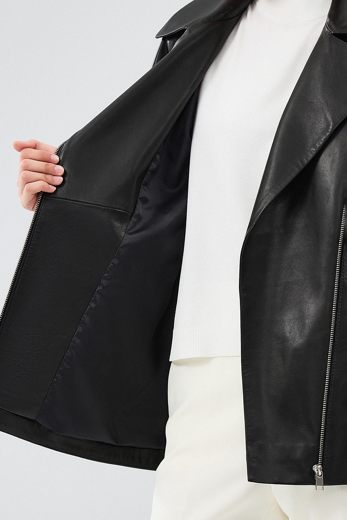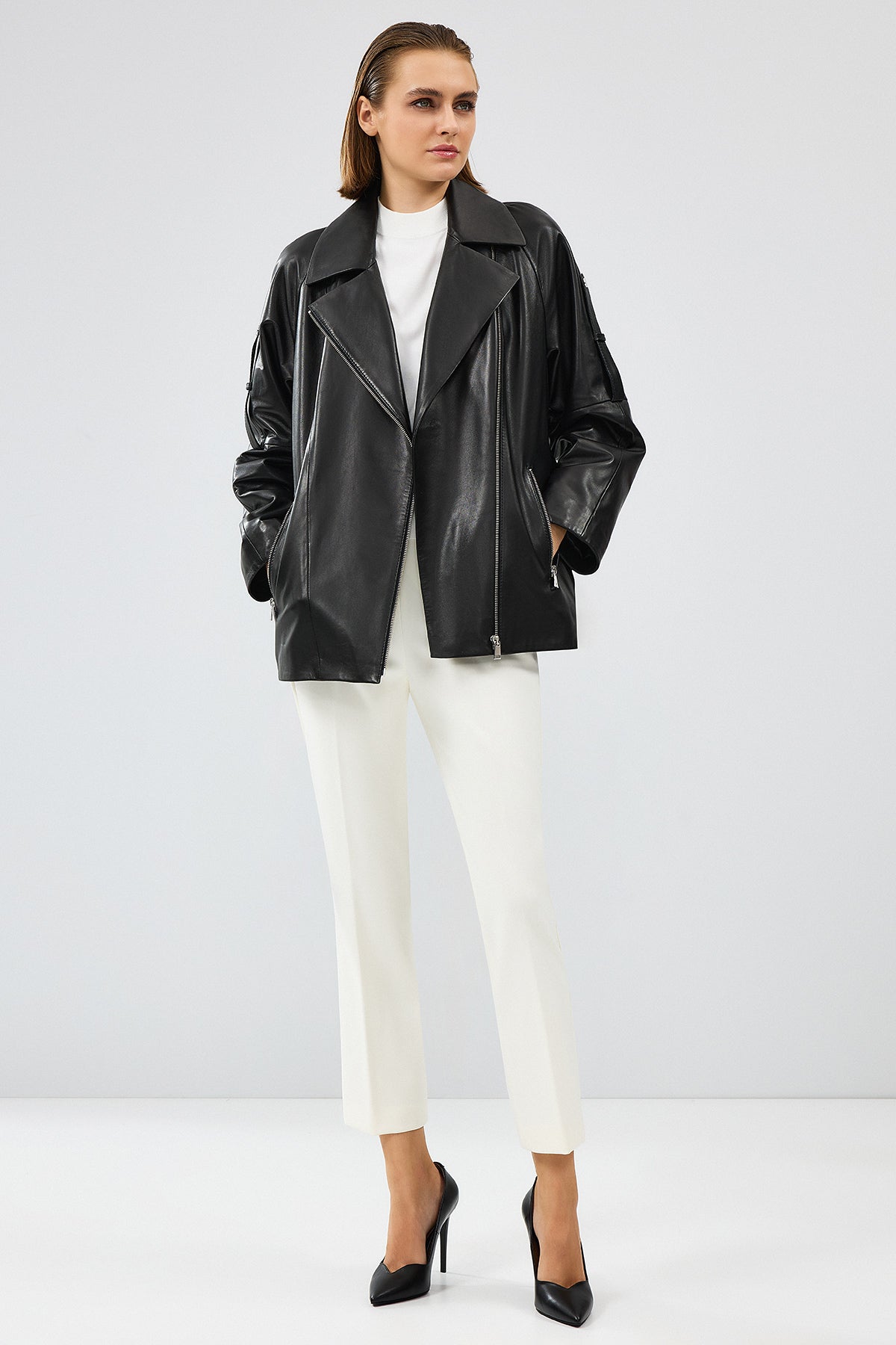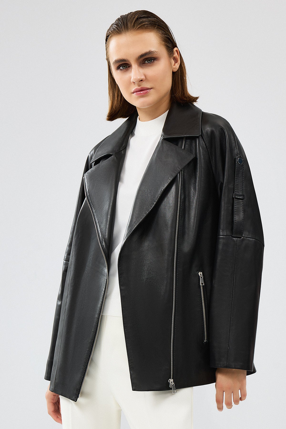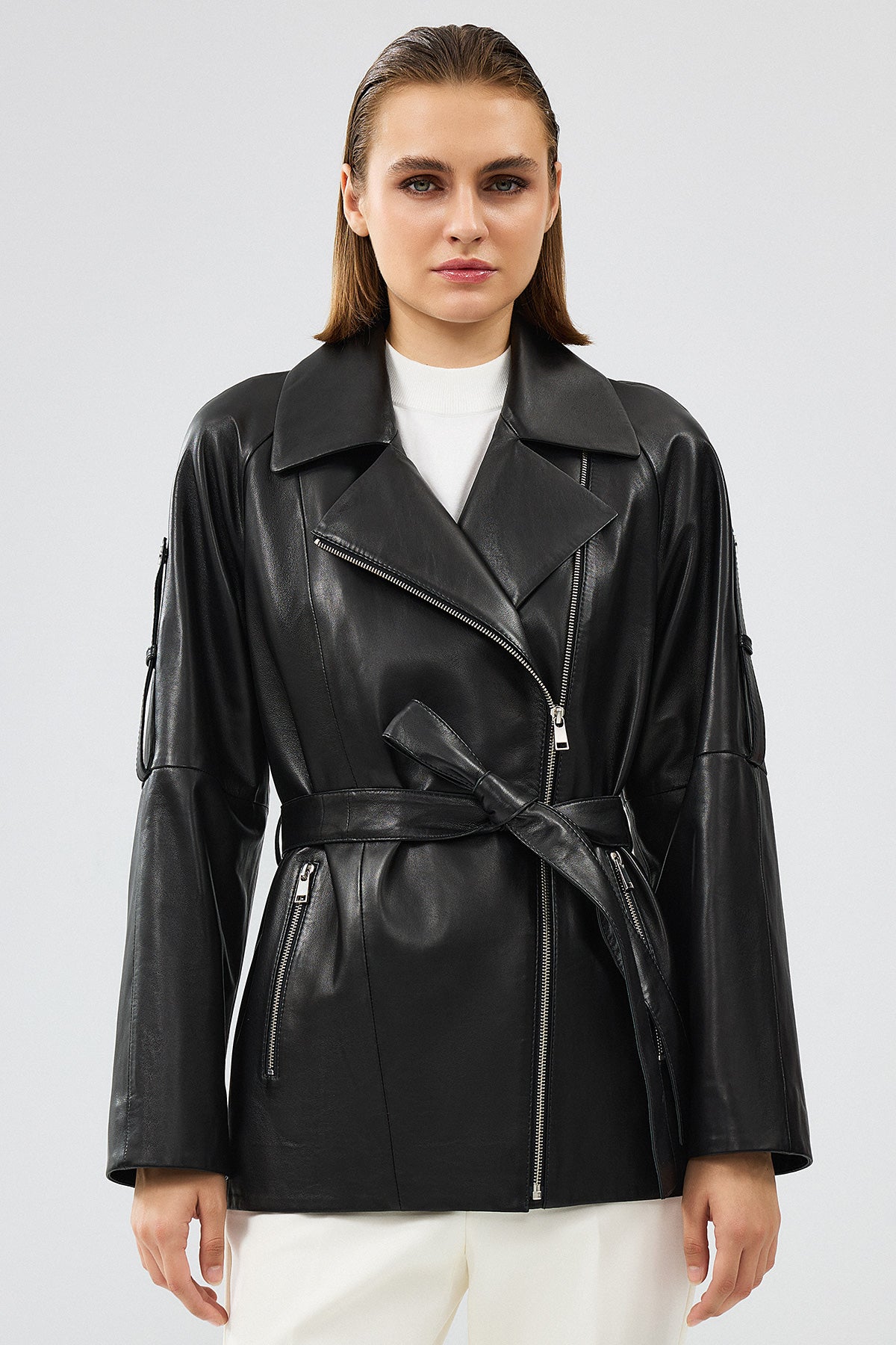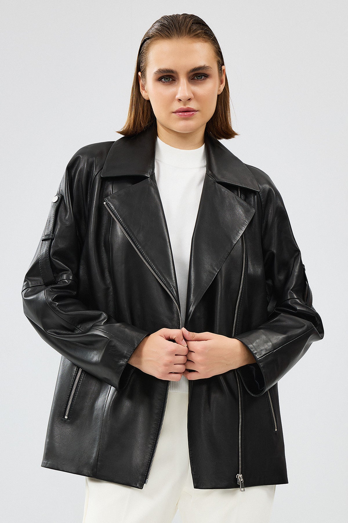 Adriana Kadın Siyah Kruveze Yaka Deri Ceket
