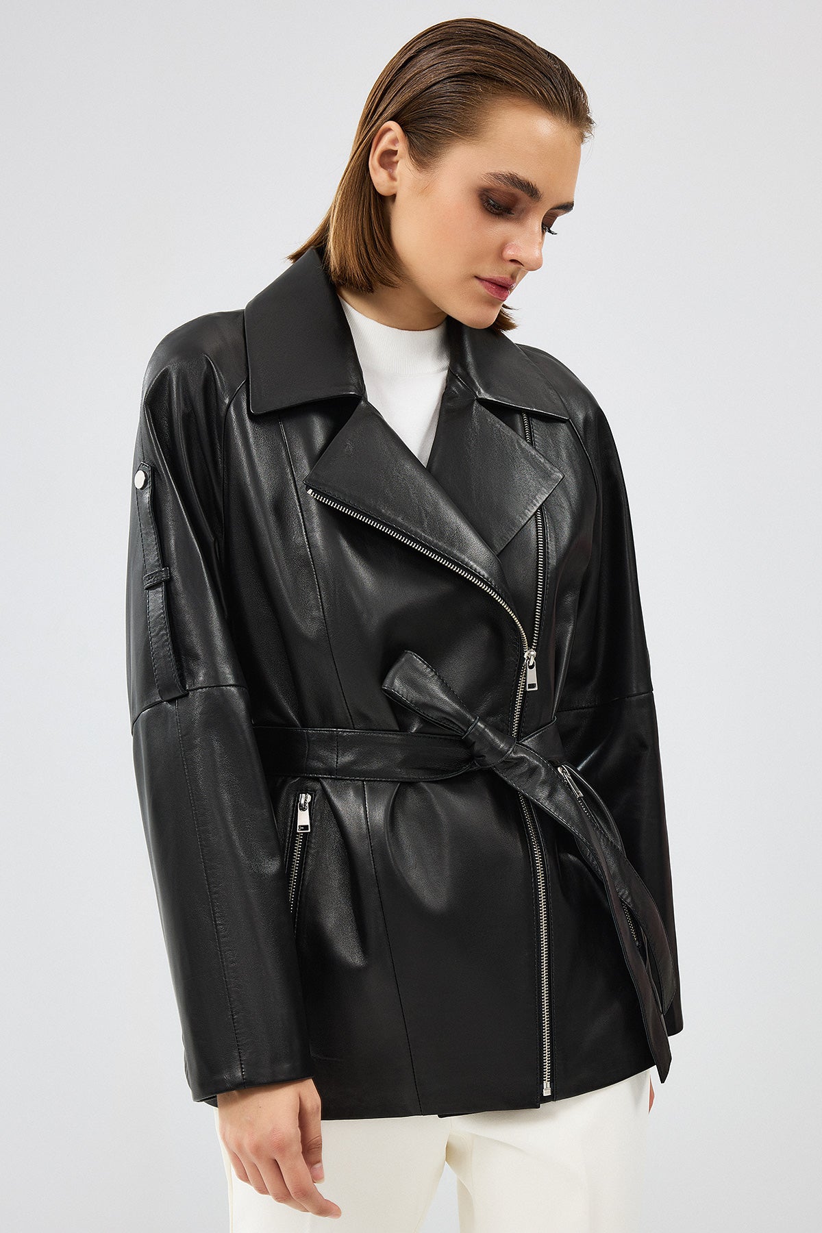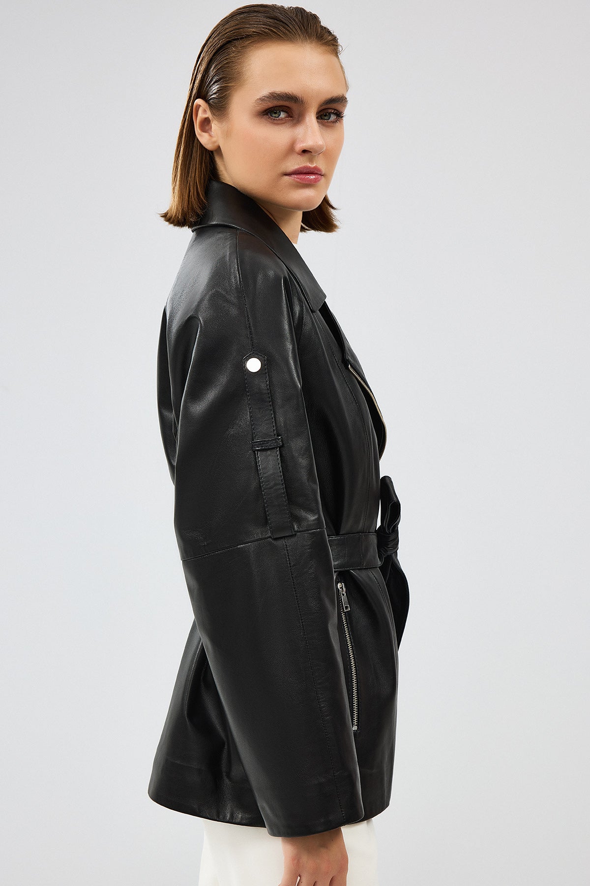 کاپشن چرم مشکی زنانه آدریانا دری مد