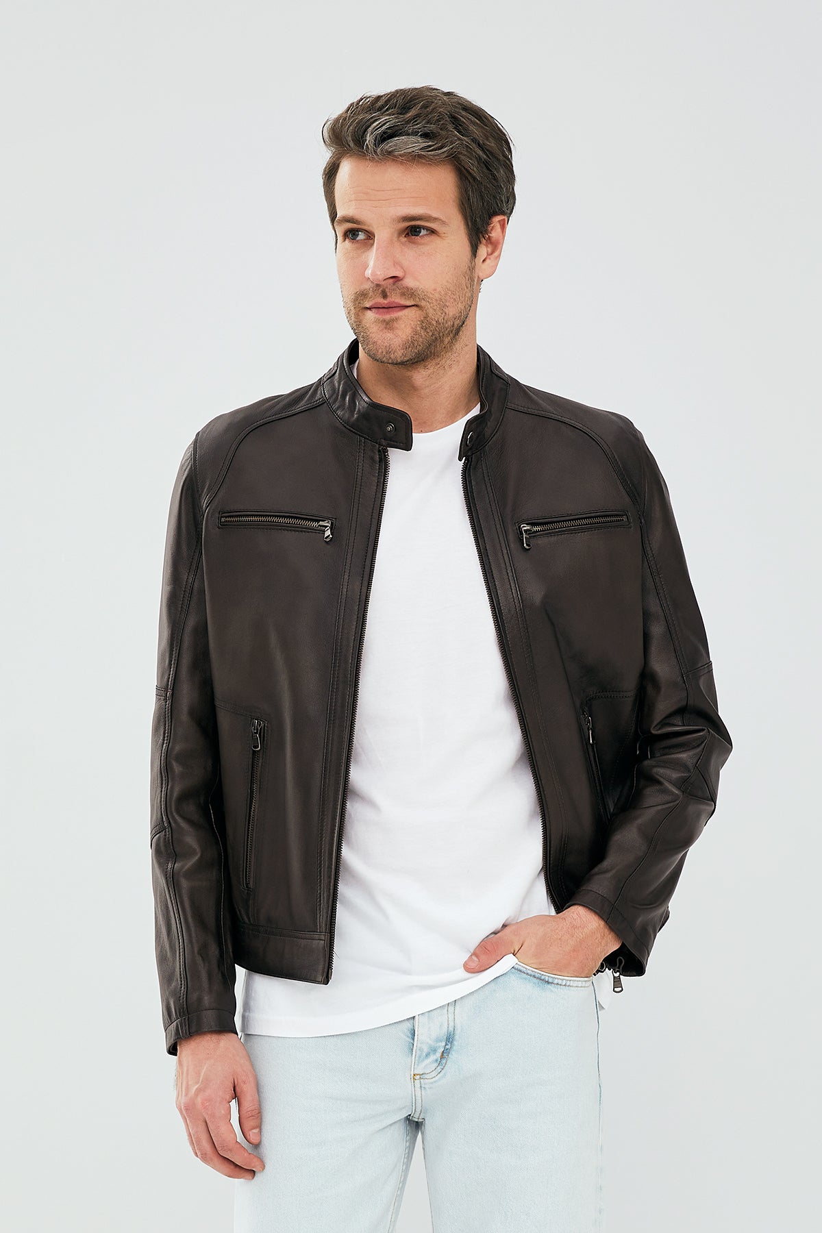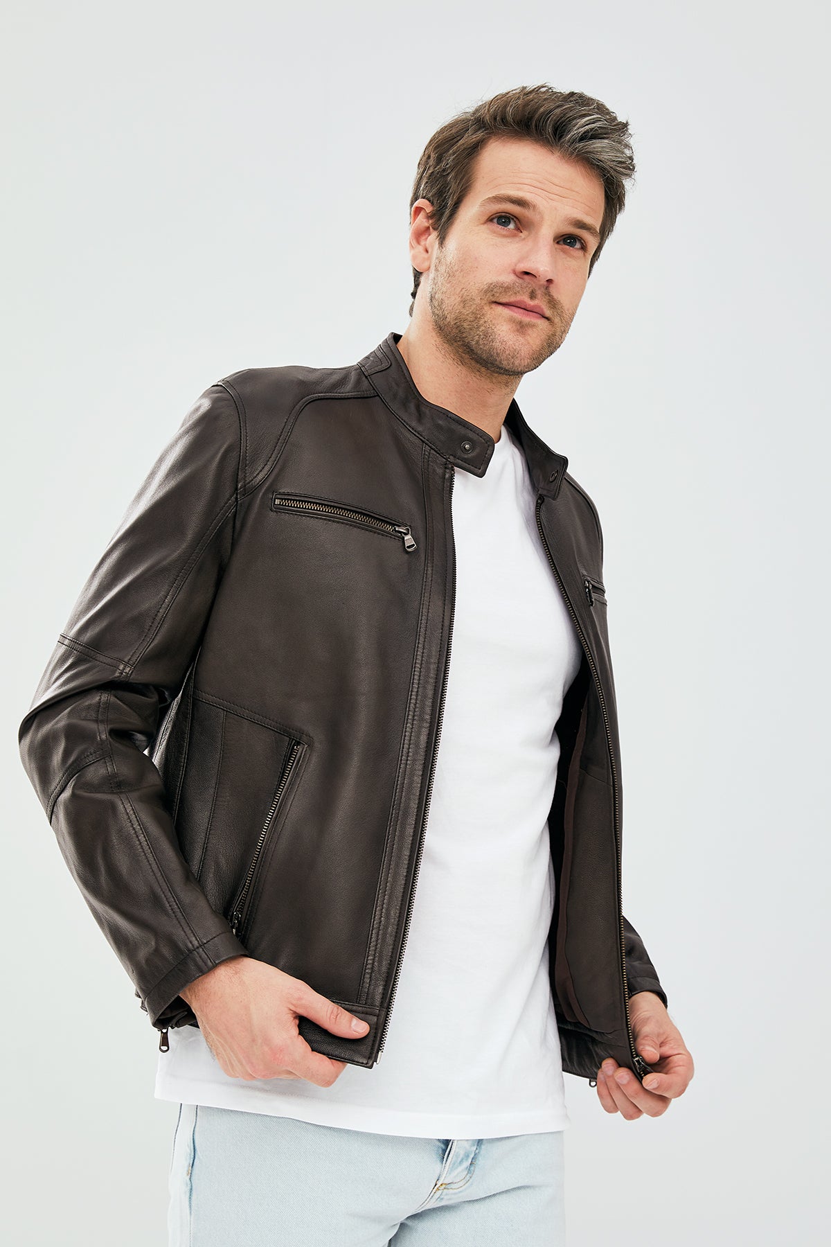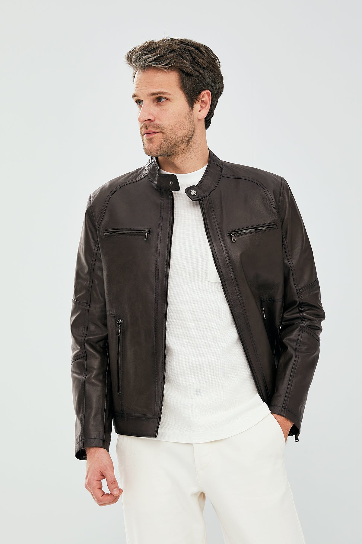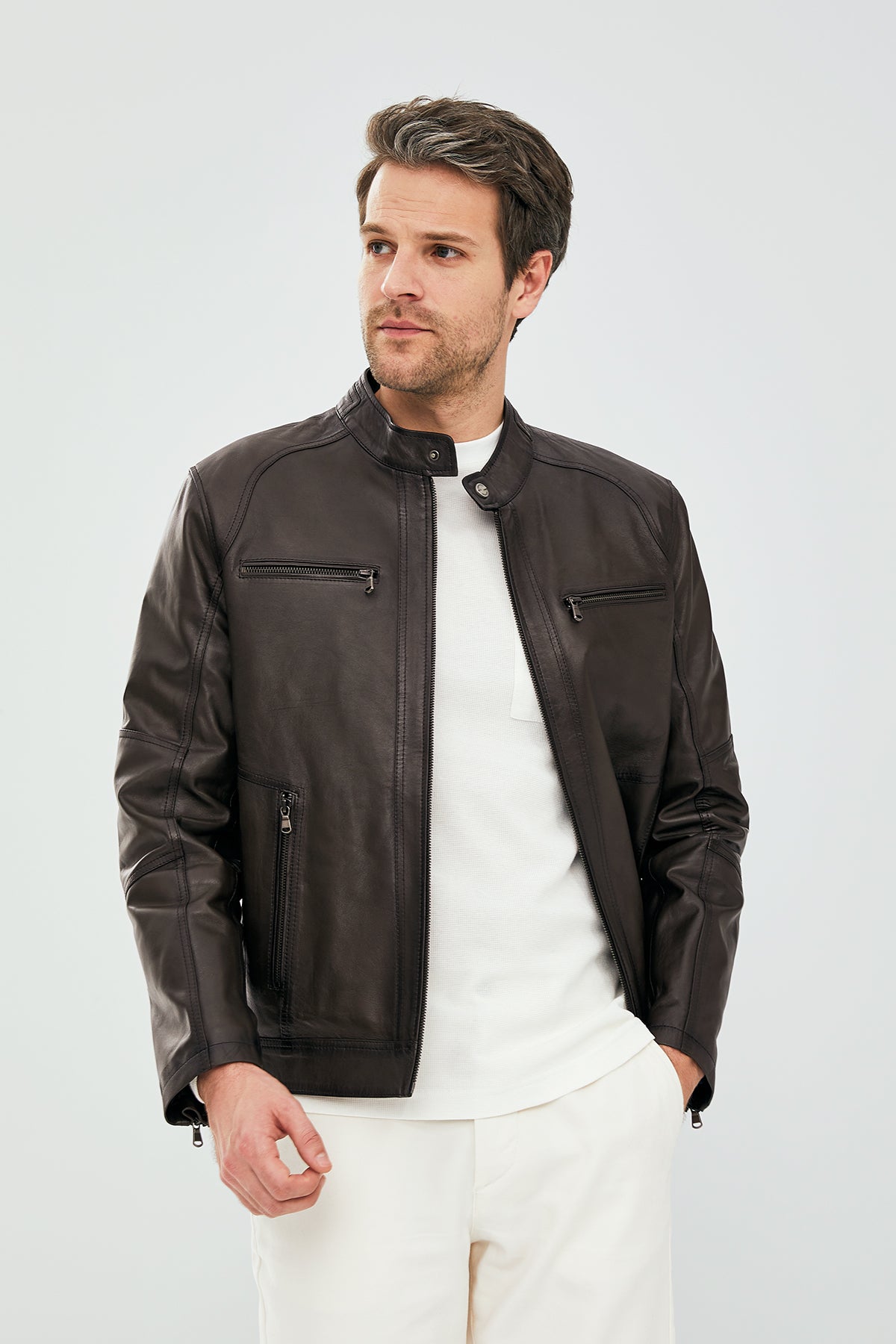 Alanzo Erkek Vizon Deri Ceket