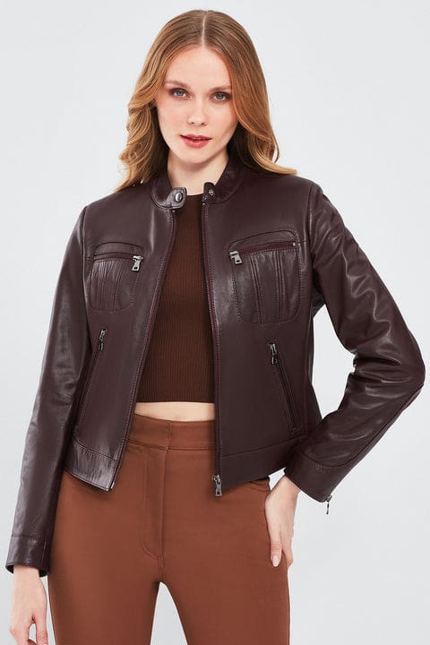 کت چرمی کوتاه قرمز زنانه آلیسون دری مد