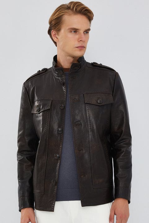 کت چرم وینتیج قهوه ای آلوارز مردانه دری مد