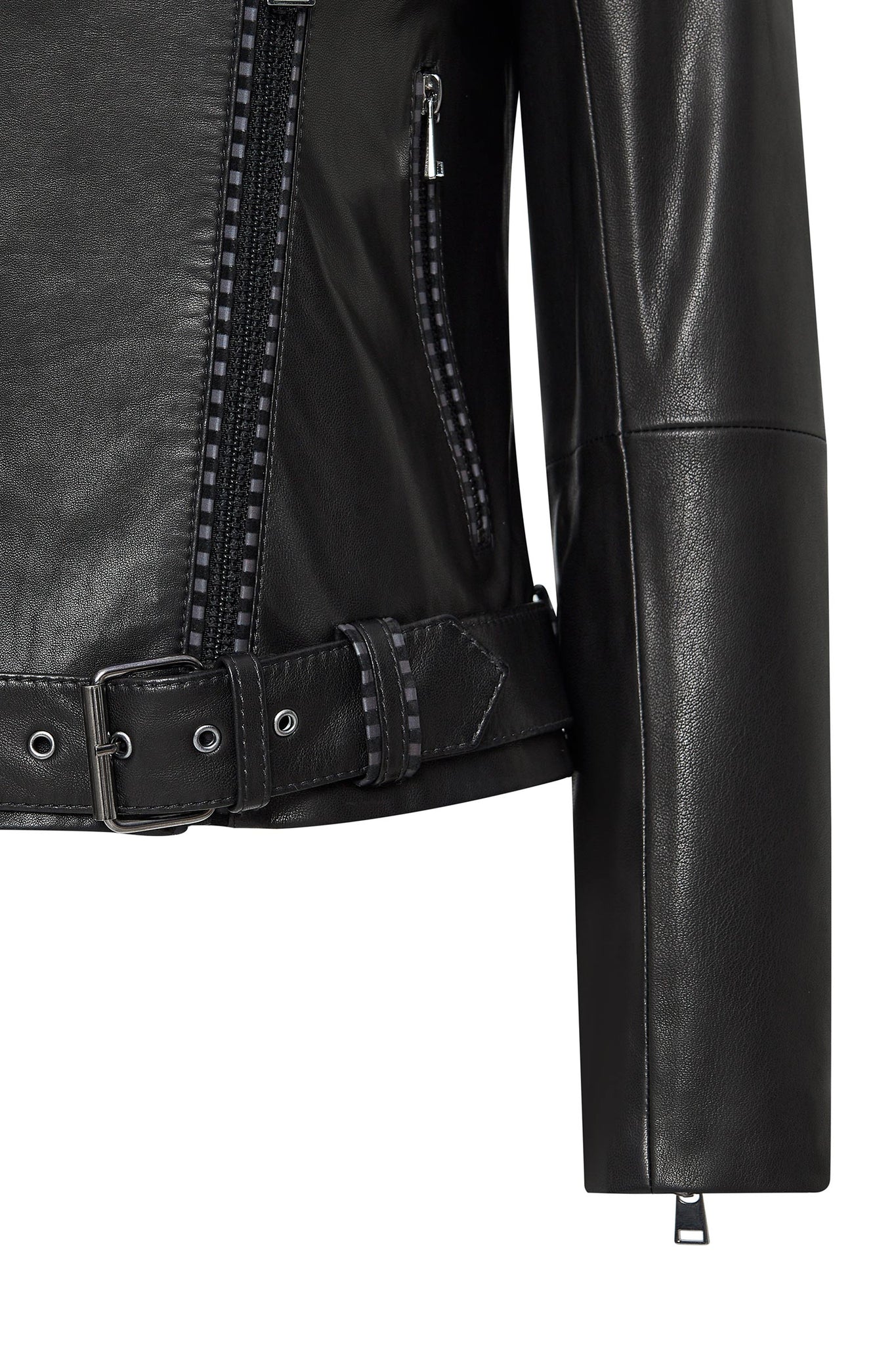 کاپشن چرم موتورسواری مشکی زنانه Angel-X دری مد