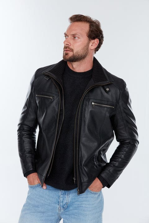 کاپشن چرمی دو یقه مشکی مردانه Antonıo دری مد