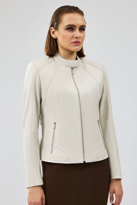 کت چرمی کوتاه کرم زنانه Anya دری مد