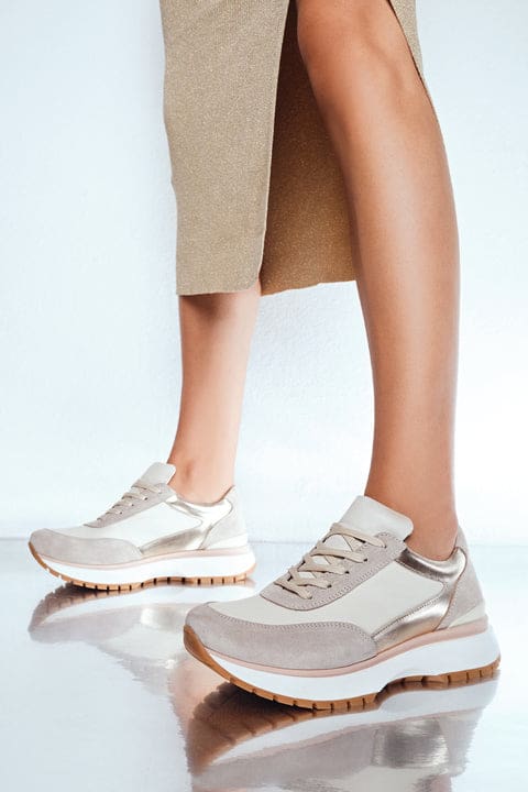 Kadın Bej Deri Süet Detaylı Sneaker