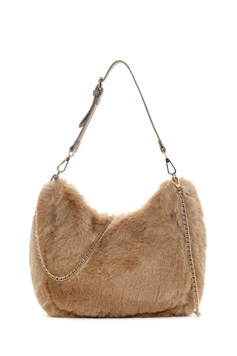 Kadın Bej Uzun Askılı Peluş Omuz Çantası