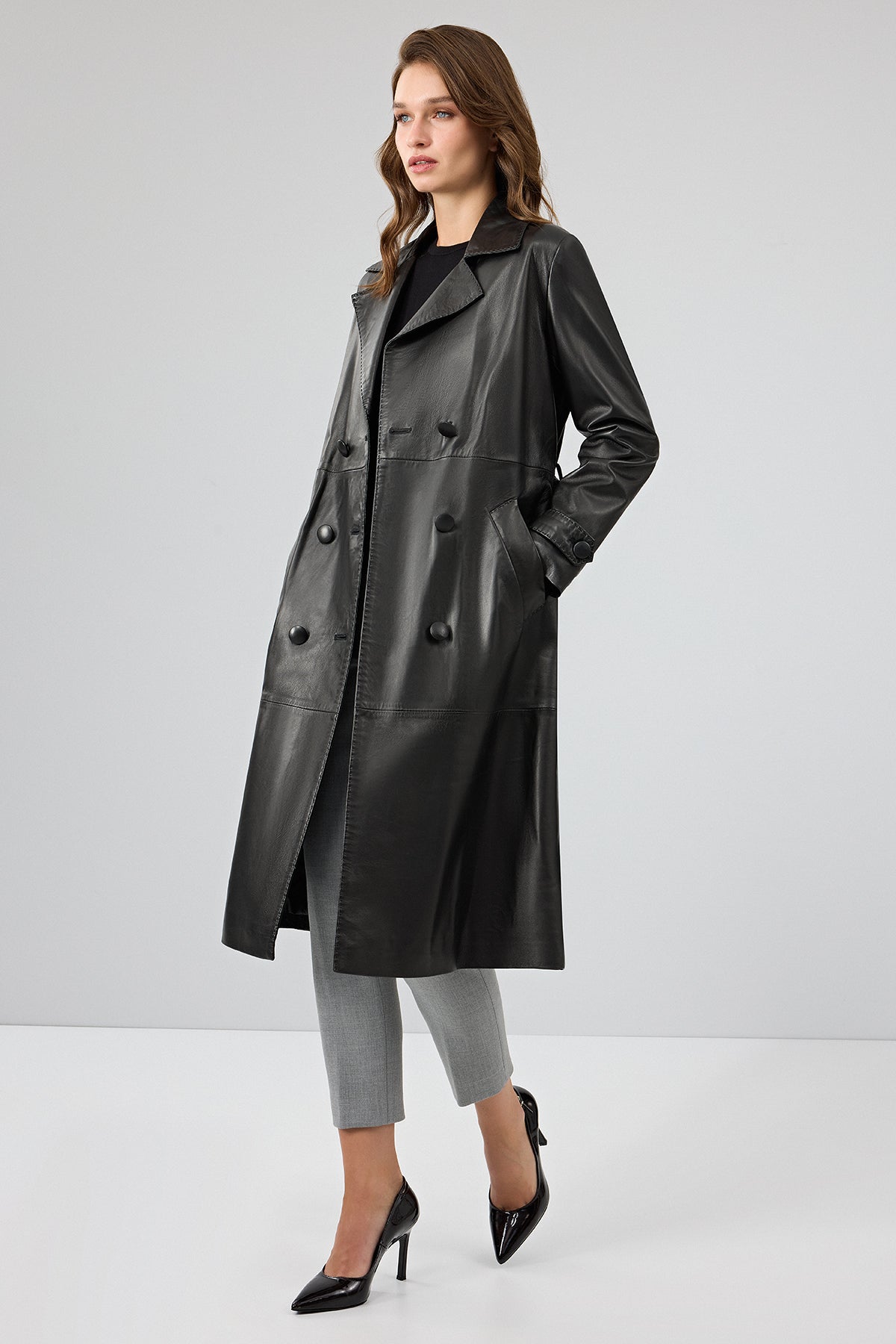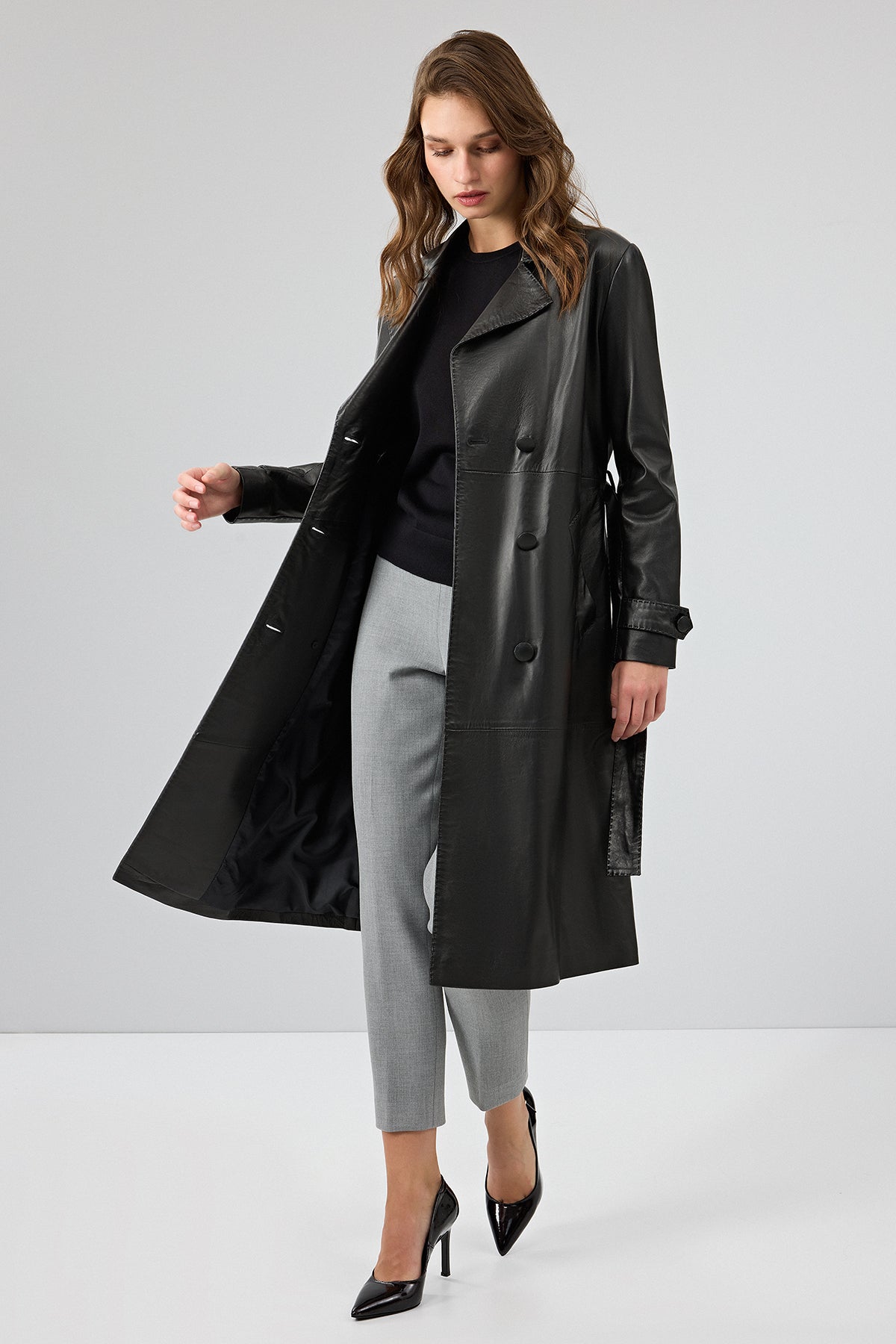 بارانی چرمی مشکی زنانه بیانسه دری مد