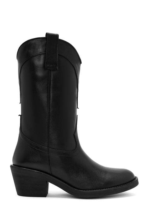 Kadın Siyah Topuklu Deri Kovboy Bot