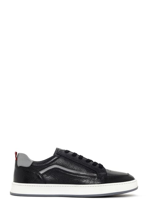 Erkek Siyah Bağcıklı Deri Sneaker