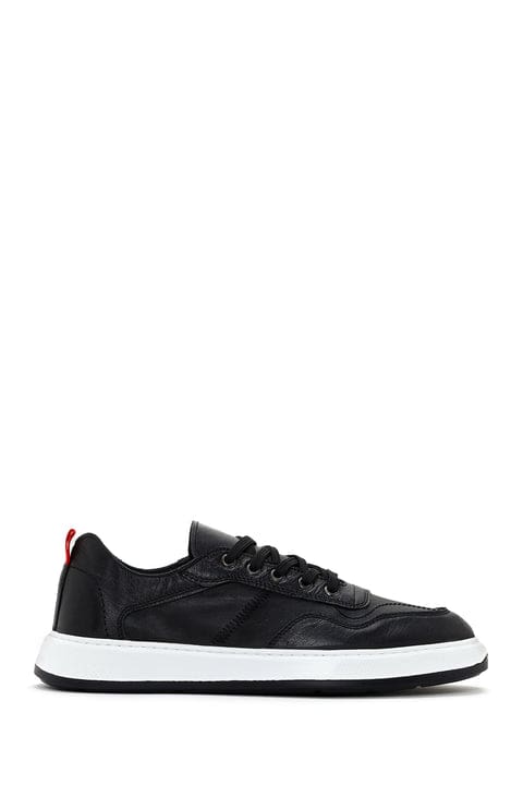 Erkek Siyah Bağcıklı Deri Sneaker