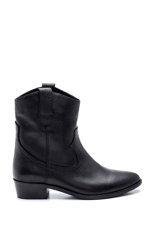 Kadın Siyah Deri Topuklu Kovboy Bot