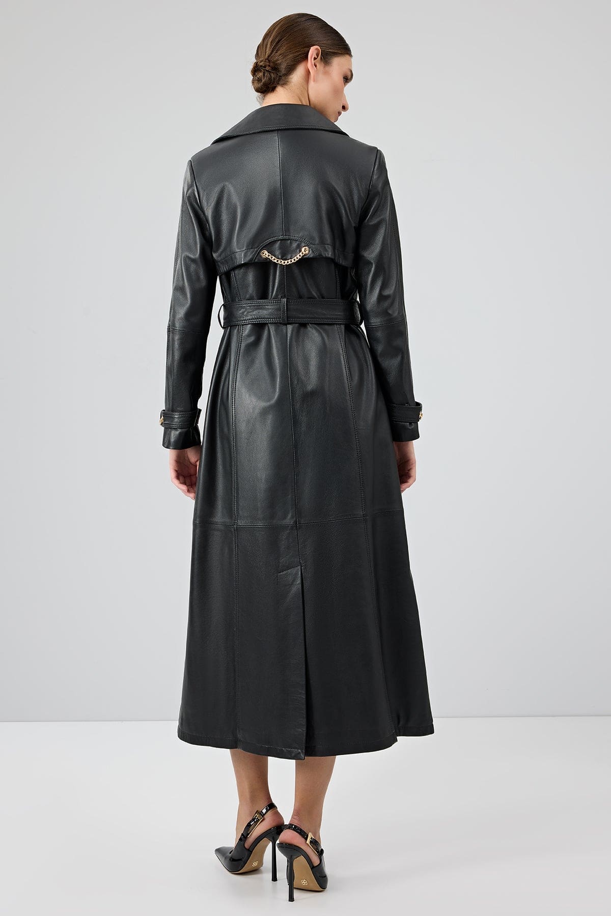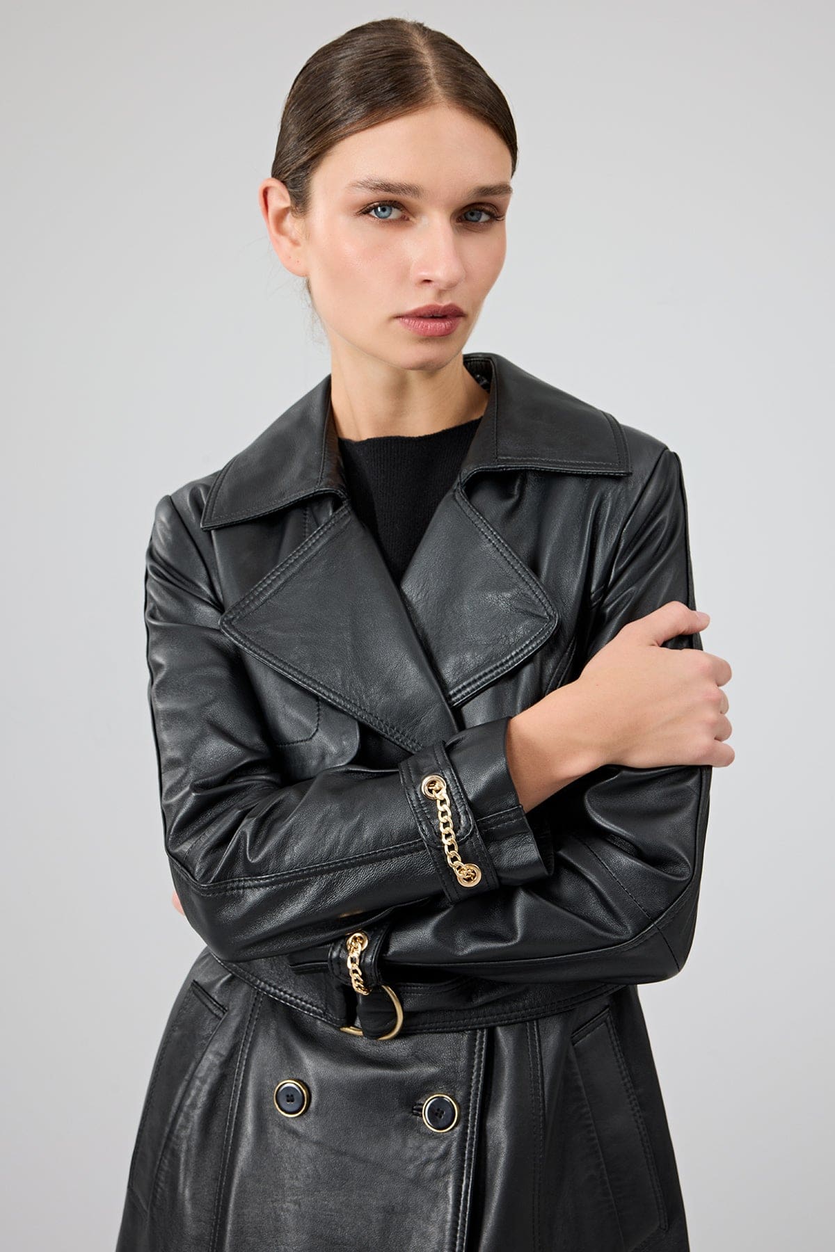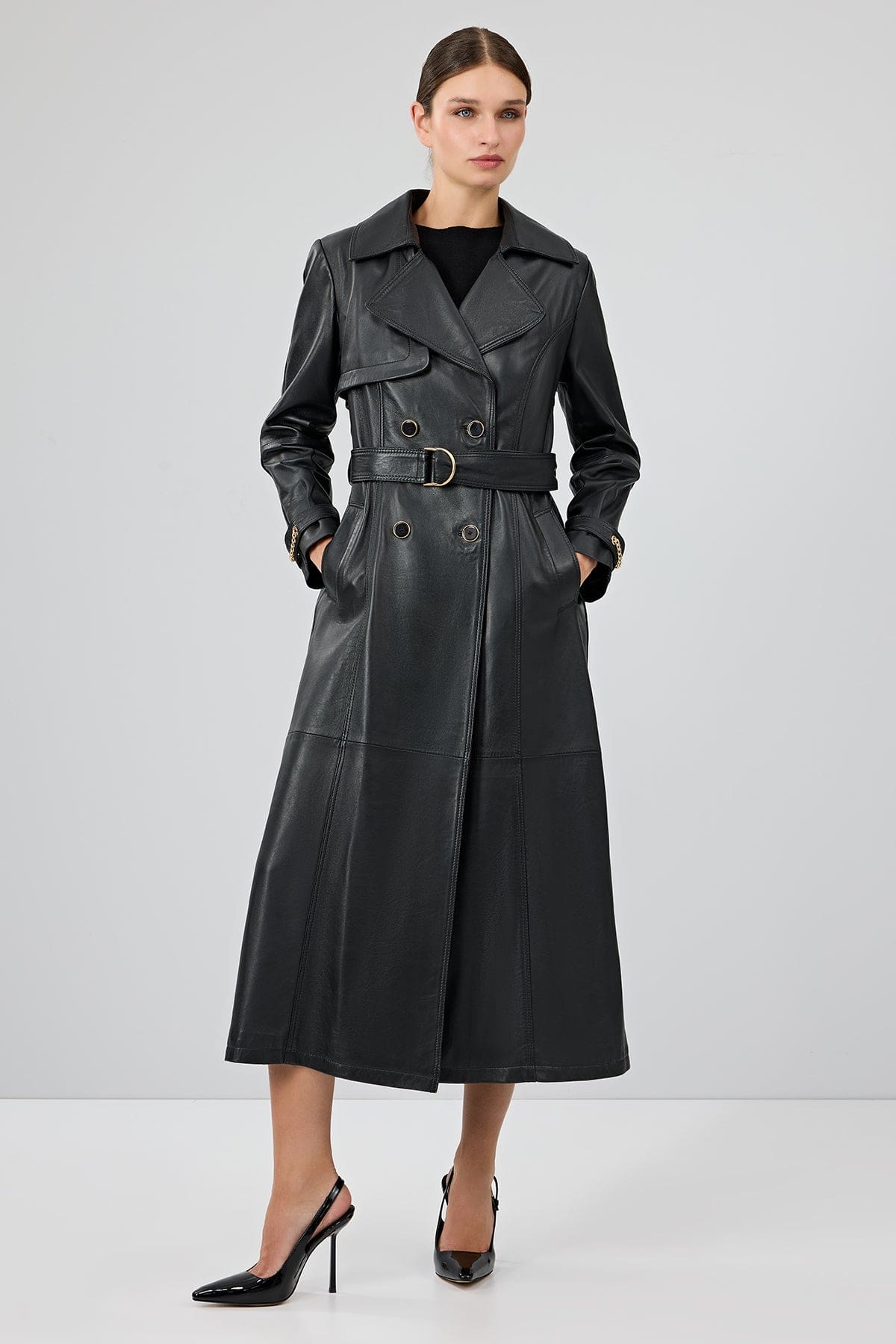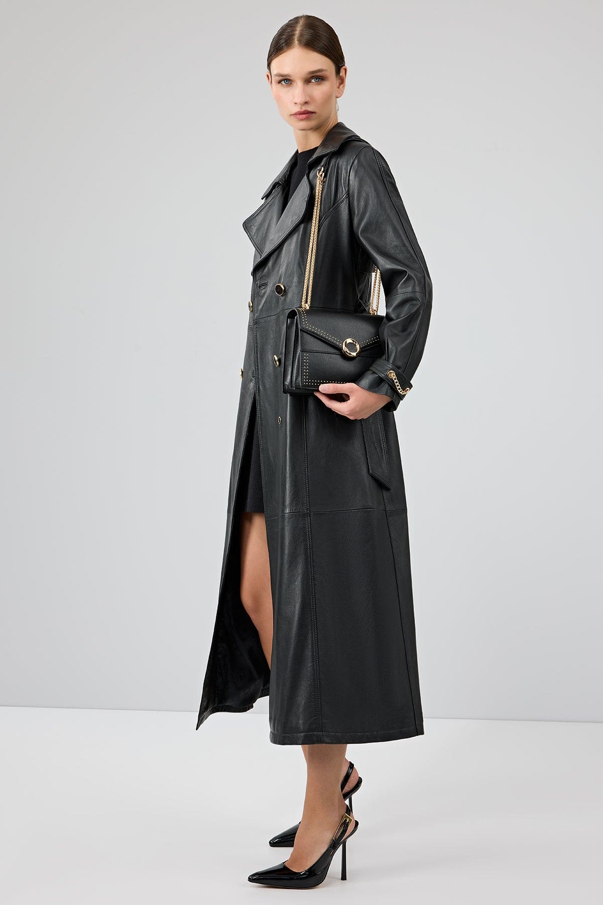 Jenny -X Kadın Siyah Kemer Detaylı Deri Trençkot