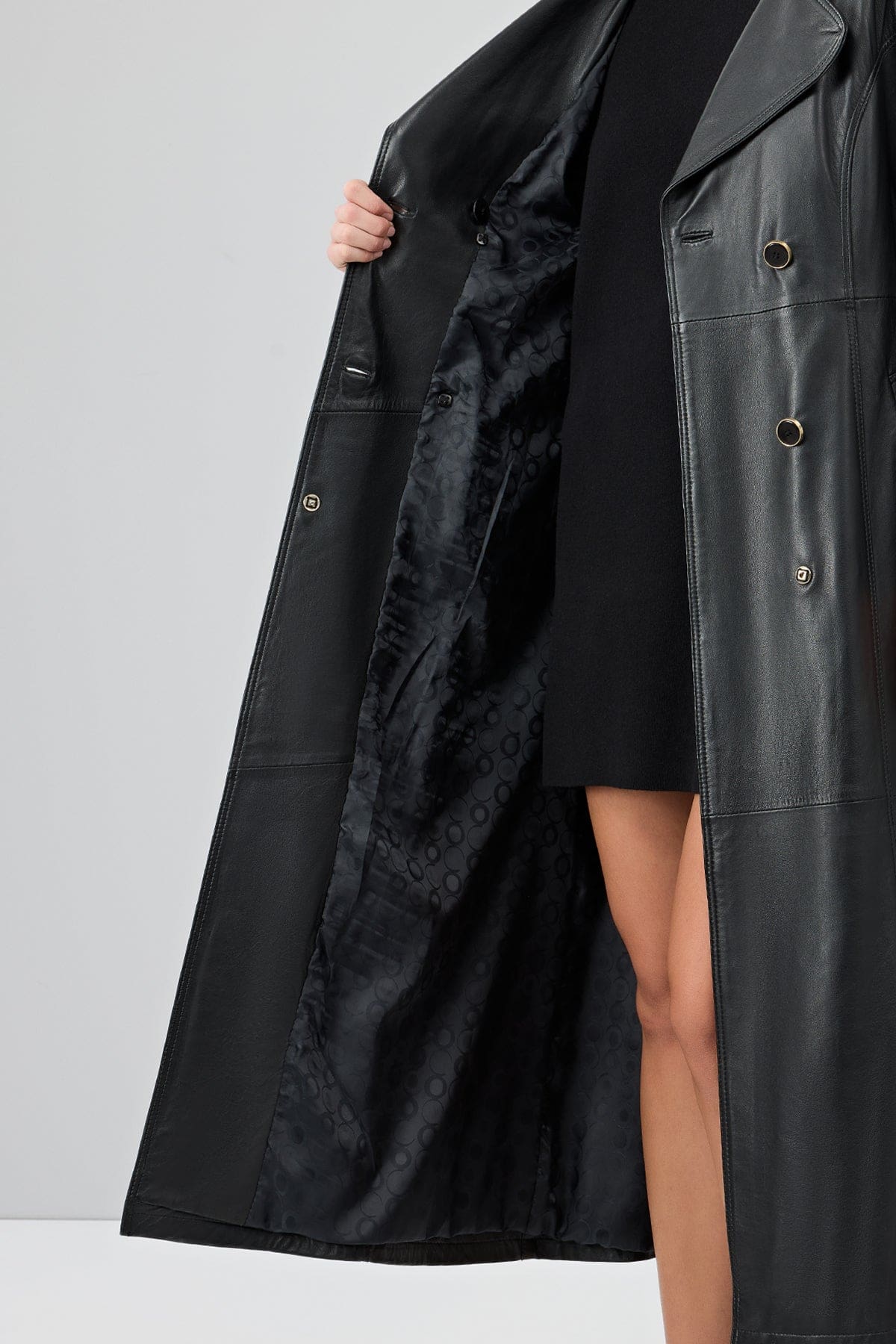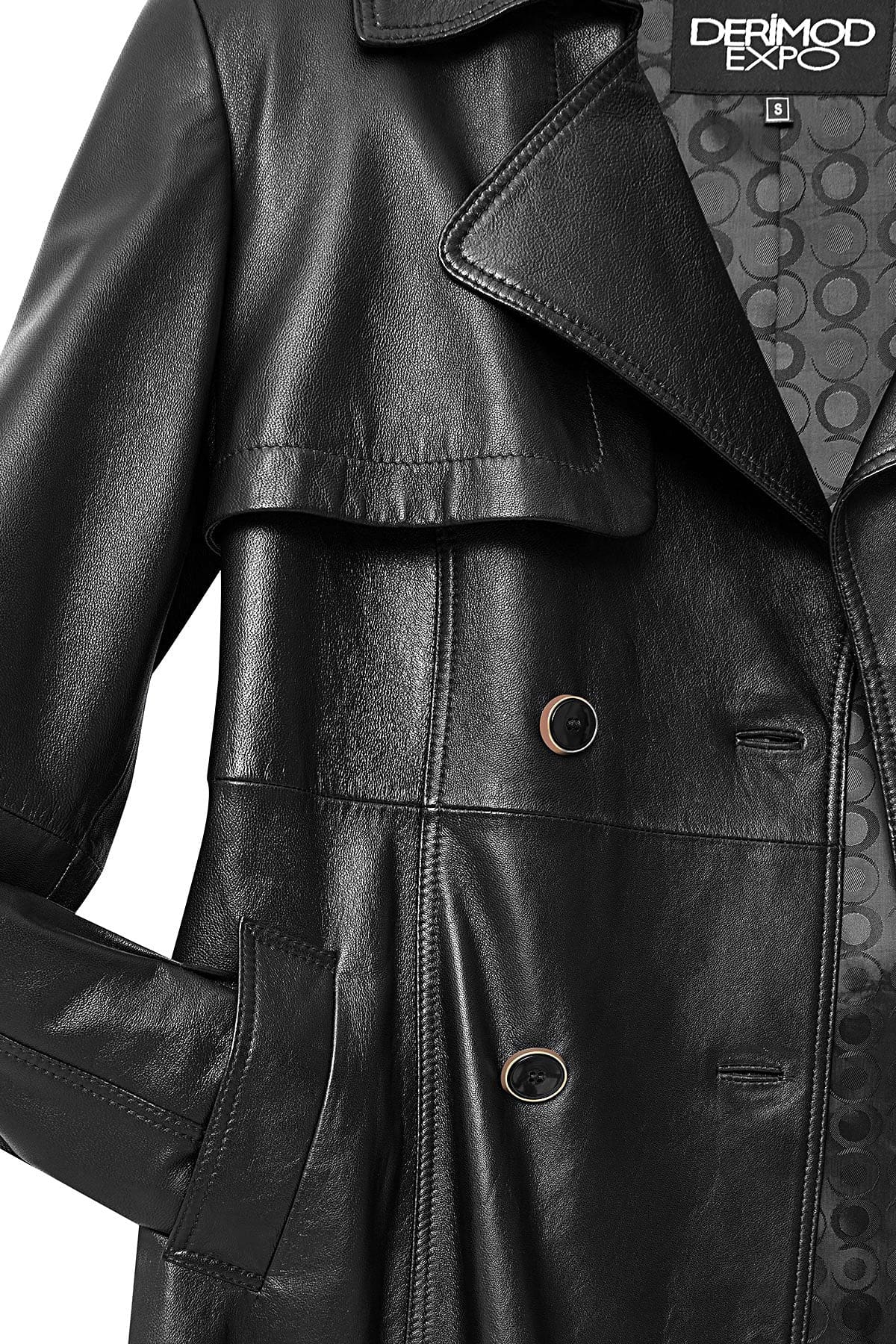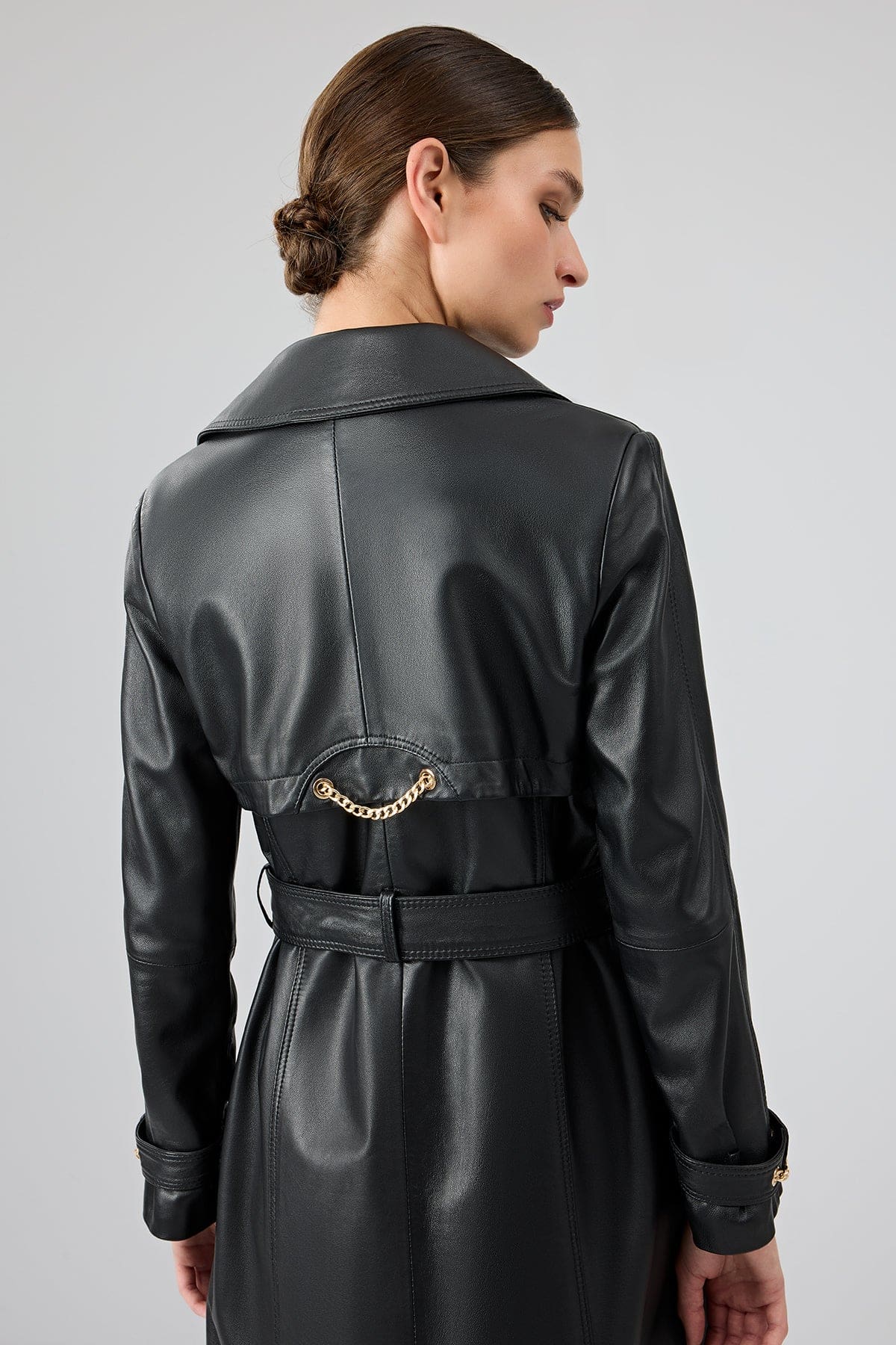Jenny -X Kadın Siyah Kemer Detaylı Deri Trençkot