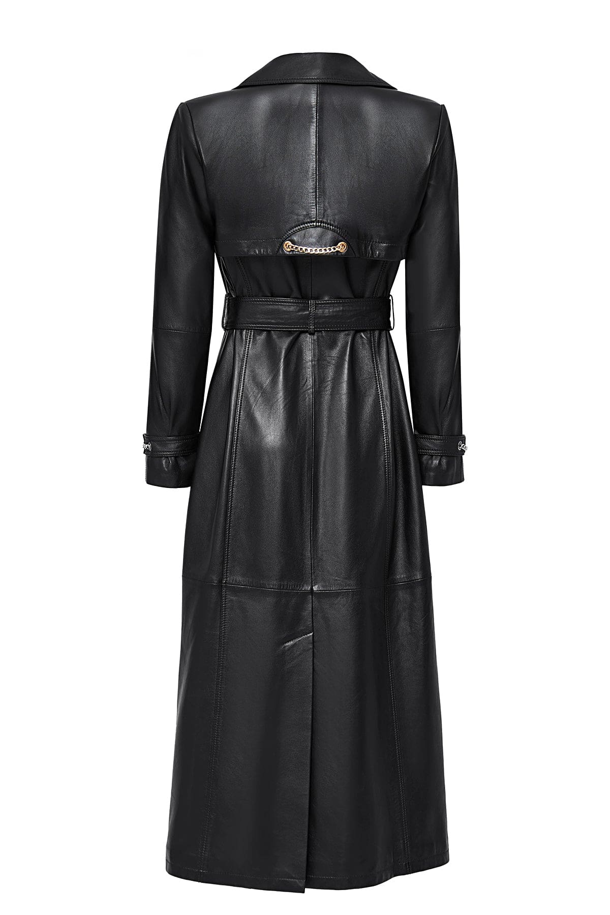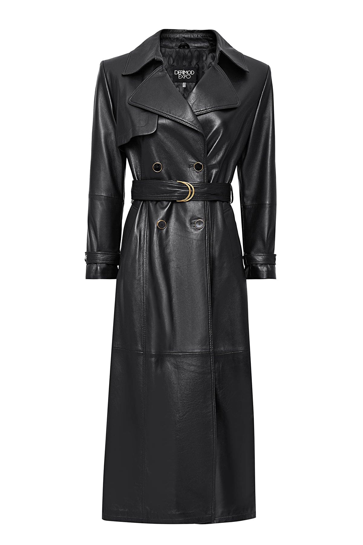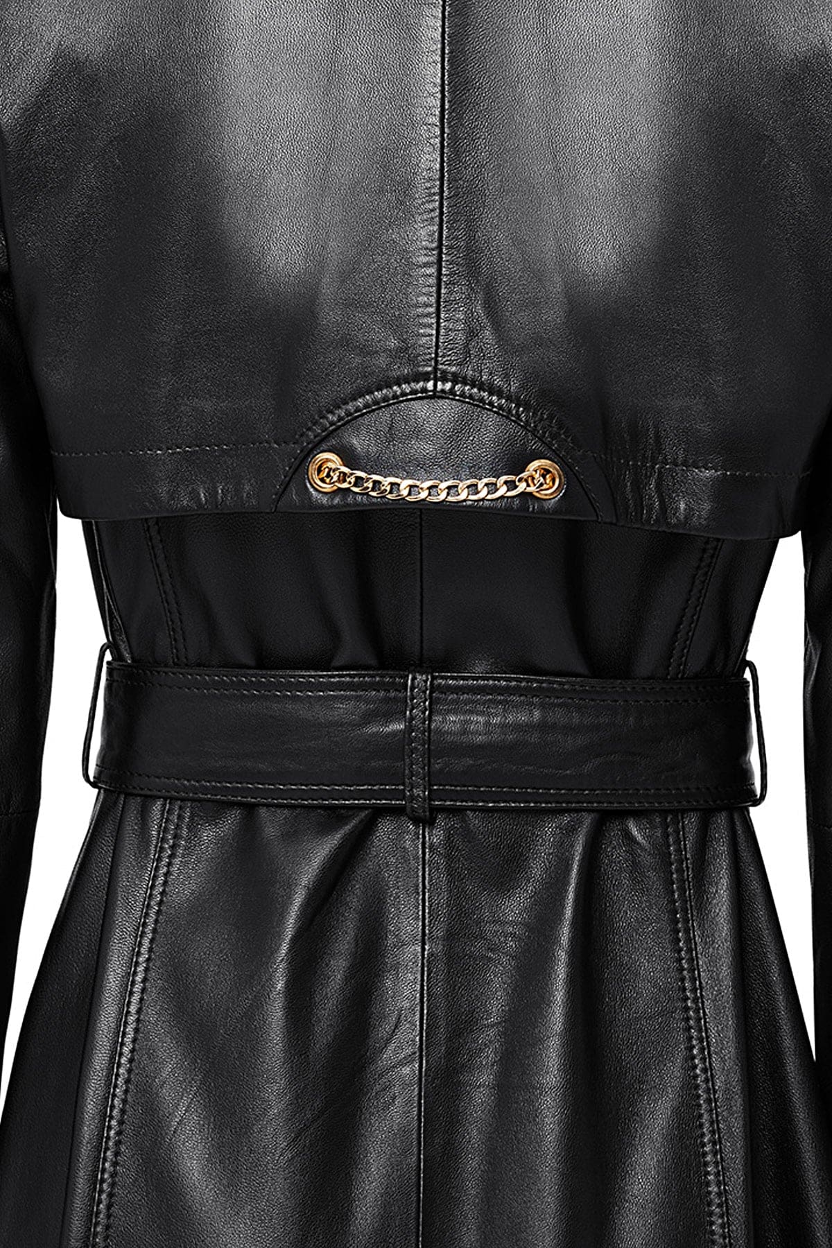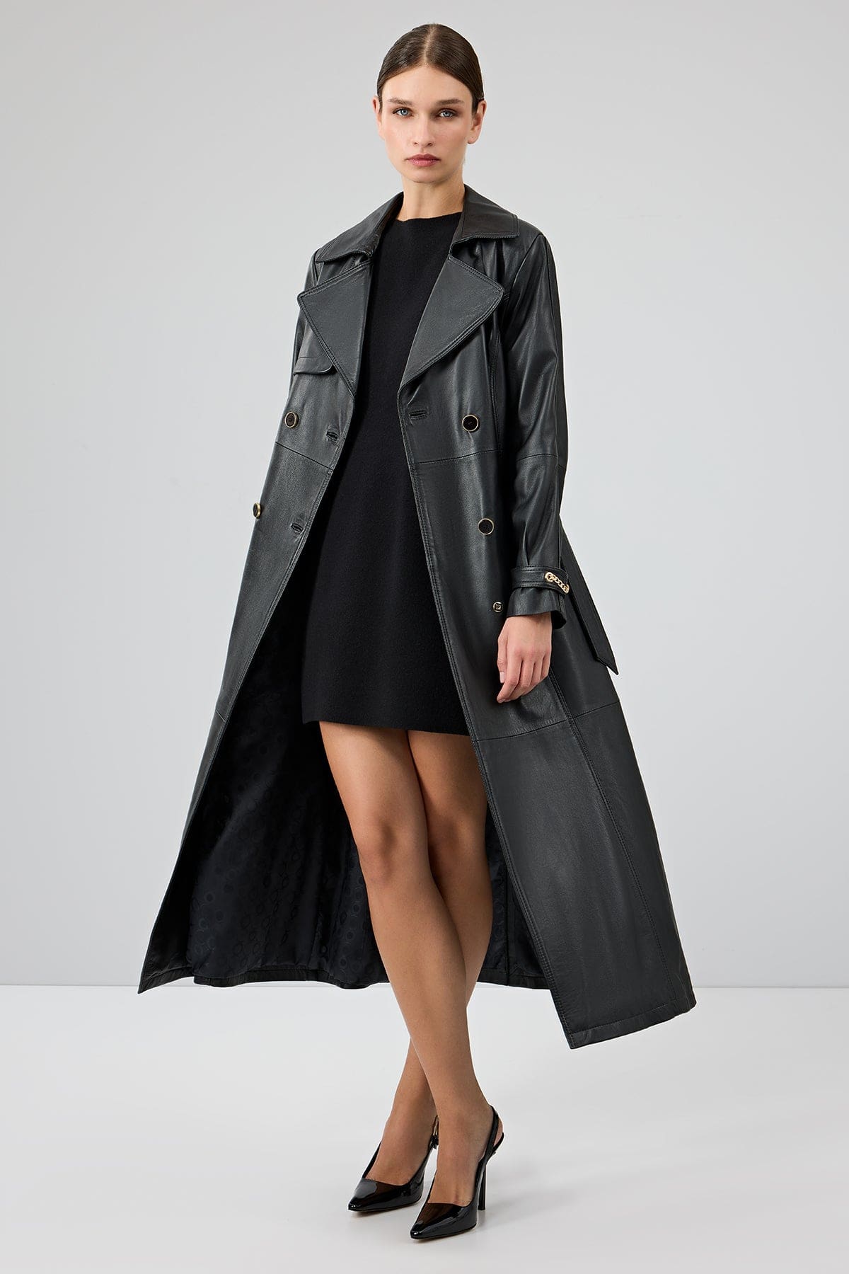 Jenny -X Kadın Siyah Kemer Detaylı Deri Trençkot