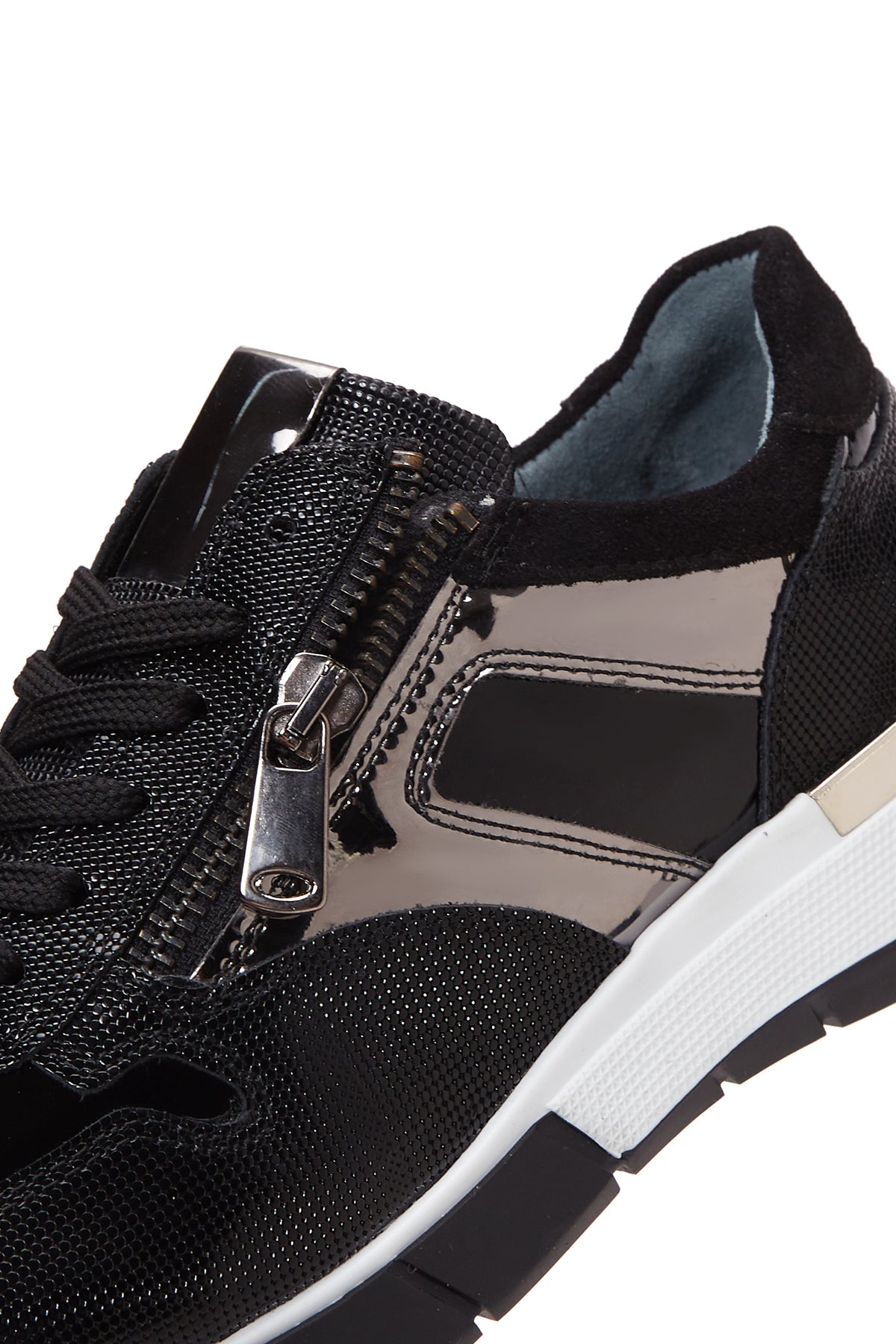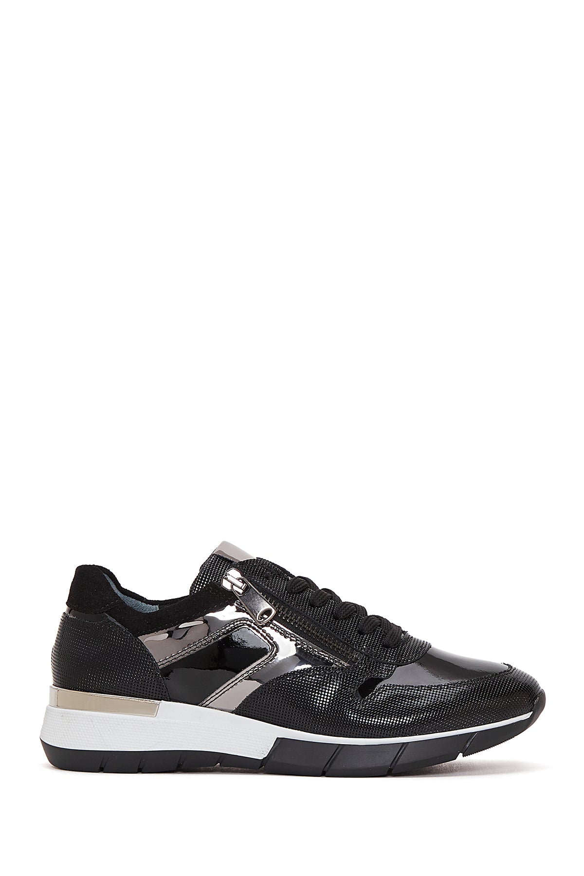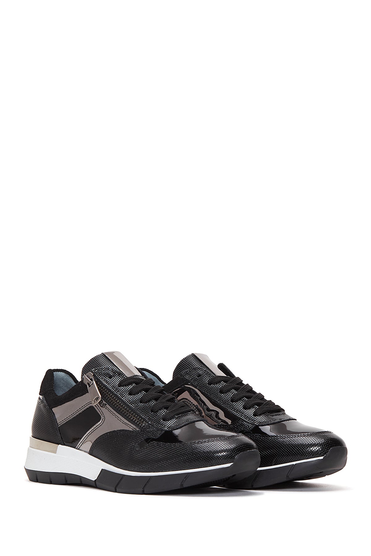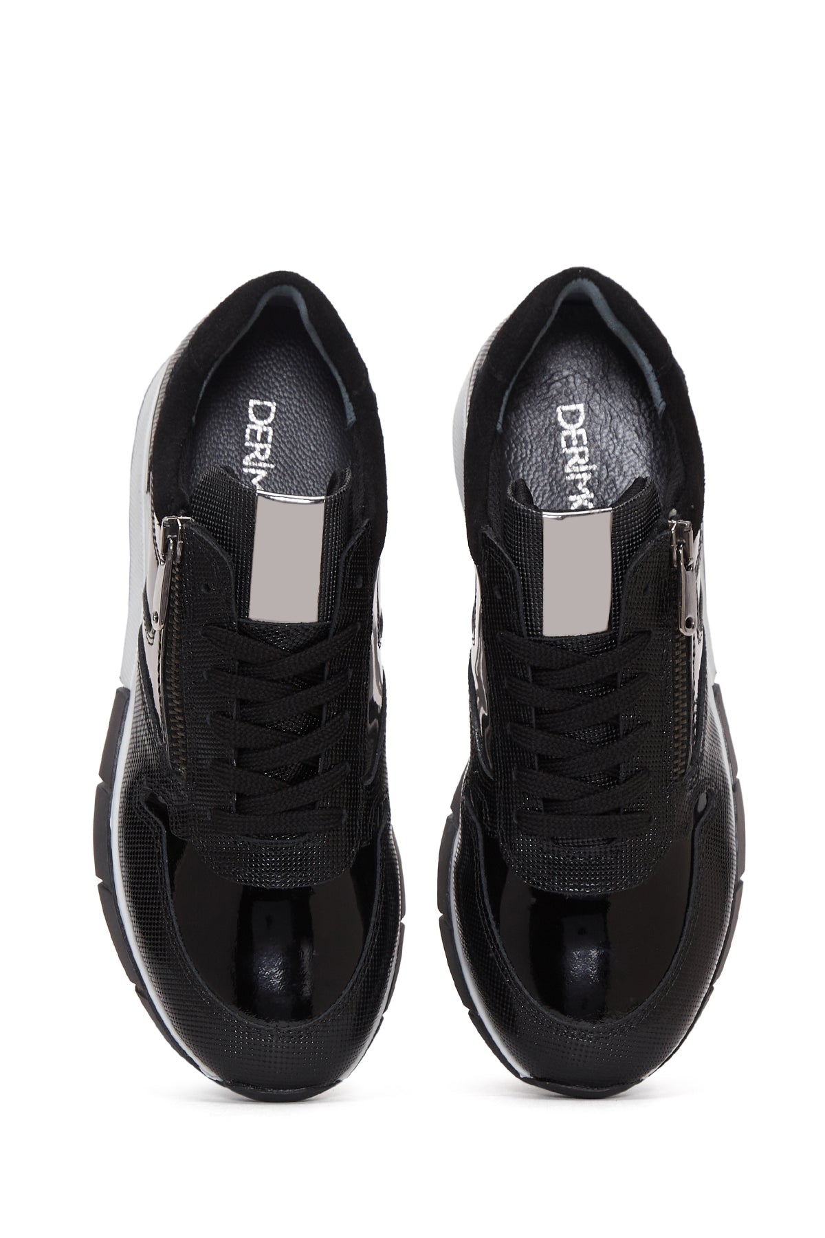Kadın Siyah Bağcıklı Fermuar Detaylı Deri Sneaker