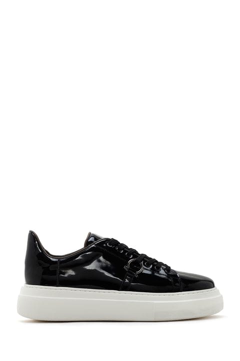 Erkek Siyah Kalın Tabanlı Bağcıklı Rugan Deri Sneaker