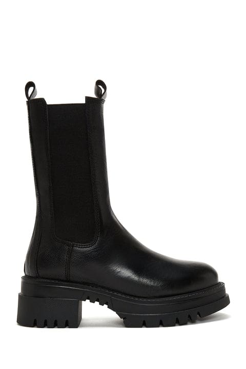 Kadın Siyah Kalın Tabanlı Deri Chelsea Bot