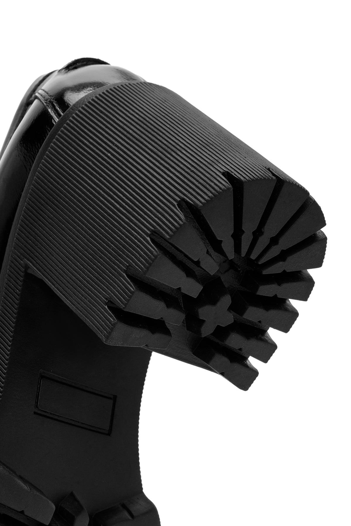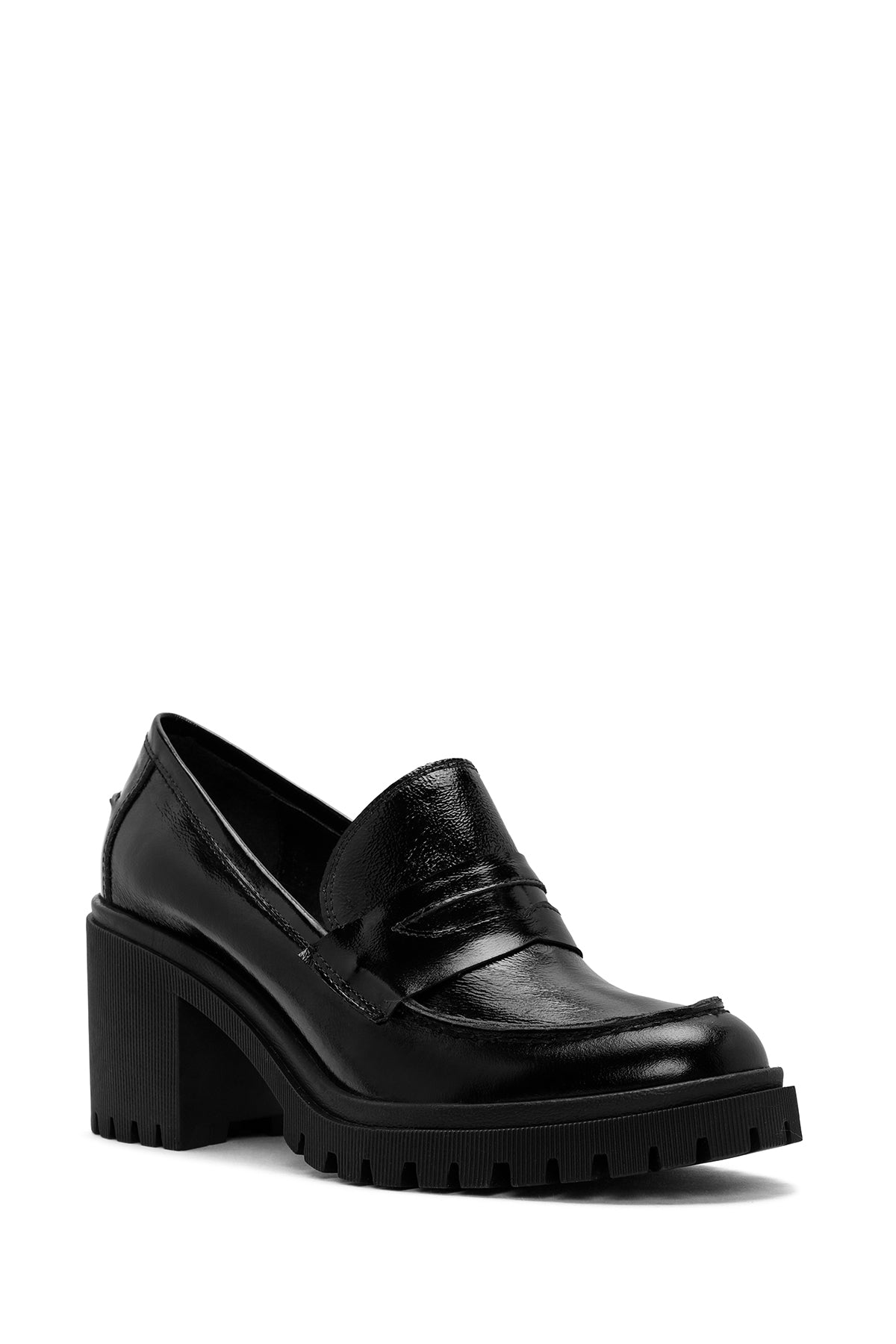Kadın Siyah Yüksek Kalın Topuklu Rugan Deri Maskülen Loafer