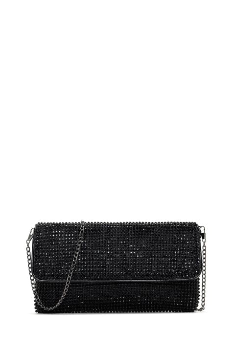 Kadın Siyah Uzun Zincir Askılı Taşlı El Çantası