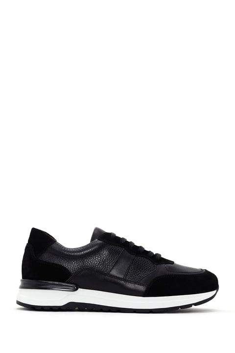 Erkek Siyah Bağcıklı Deri Casual Sneaker