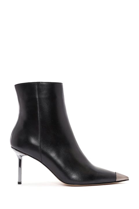 Kadın Siyah Metal Detaylı İnce Yüksek Topuklu Deri Bot