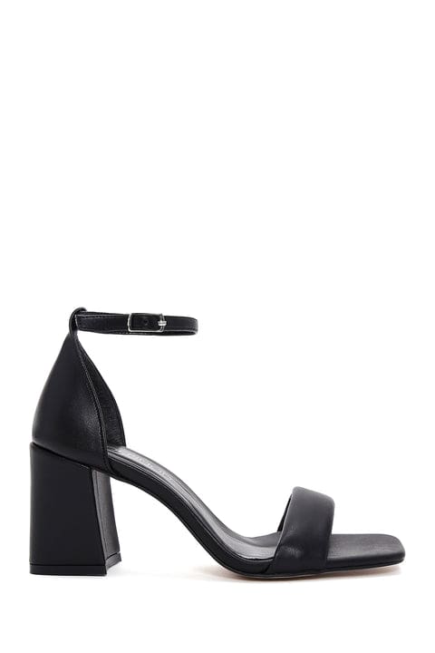 Kadın Siyah Bilekten Bağlamalı Kalın Topuklu Sandalet