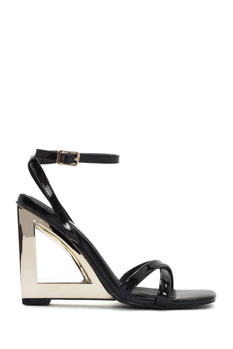 Kadın Siyah Bilekten Tokalı Dolgu Topuklu Rugan Sandalet