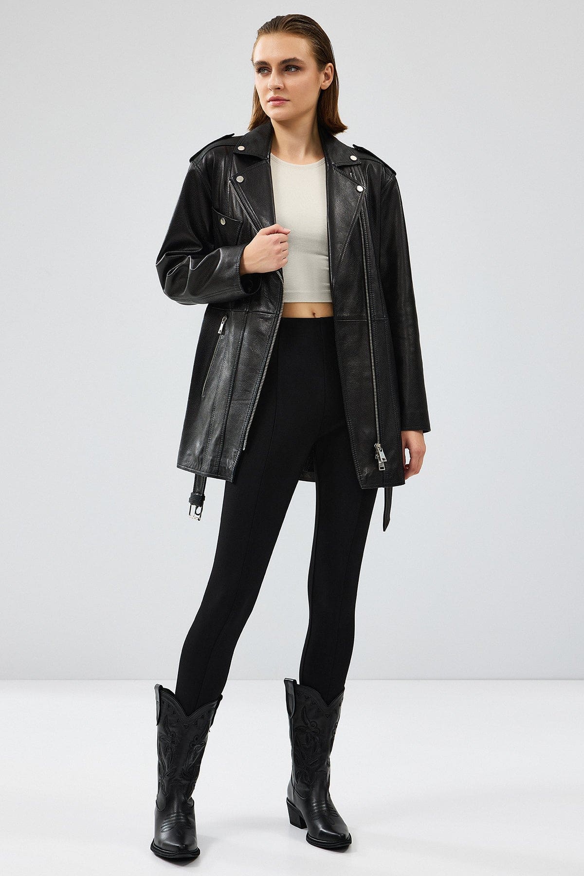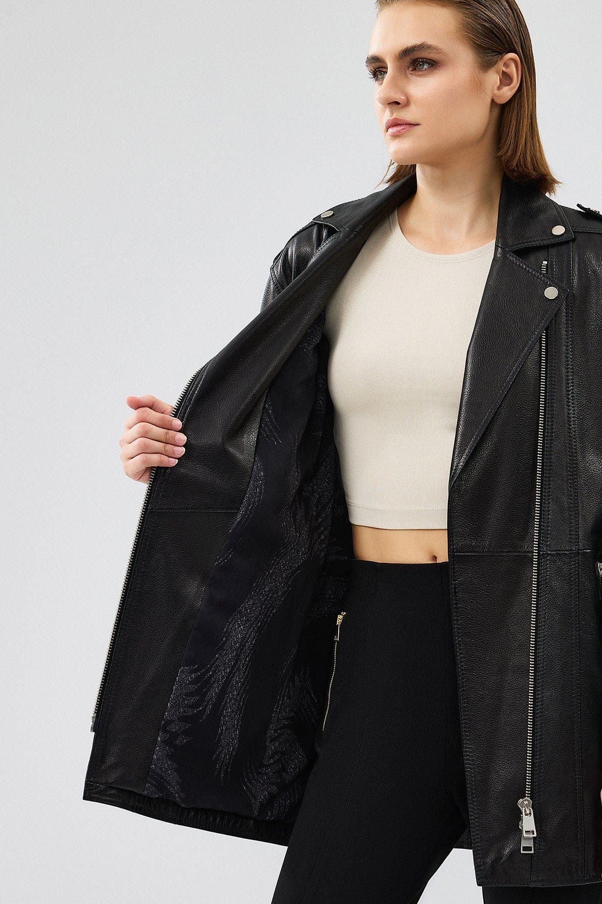 Venus Kadın Siyah Kruvaze Yaka Deri Ceket