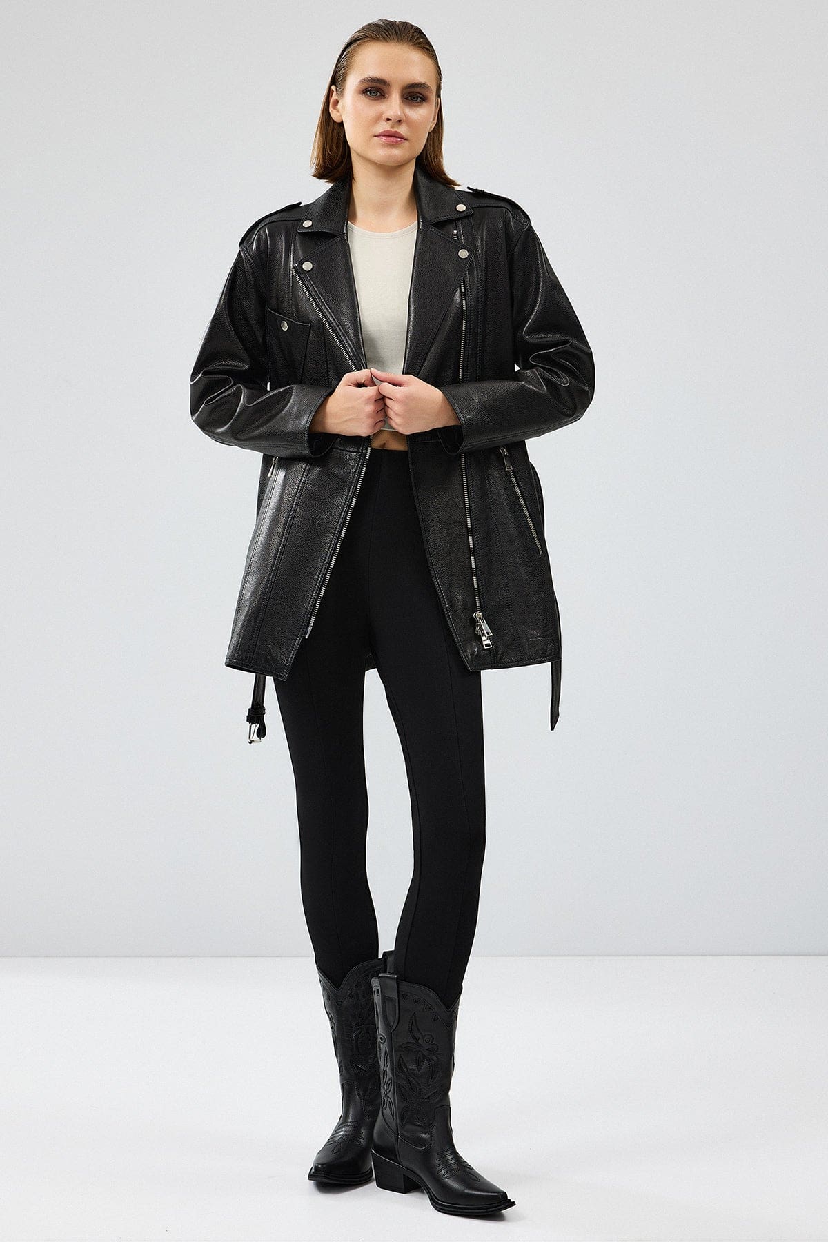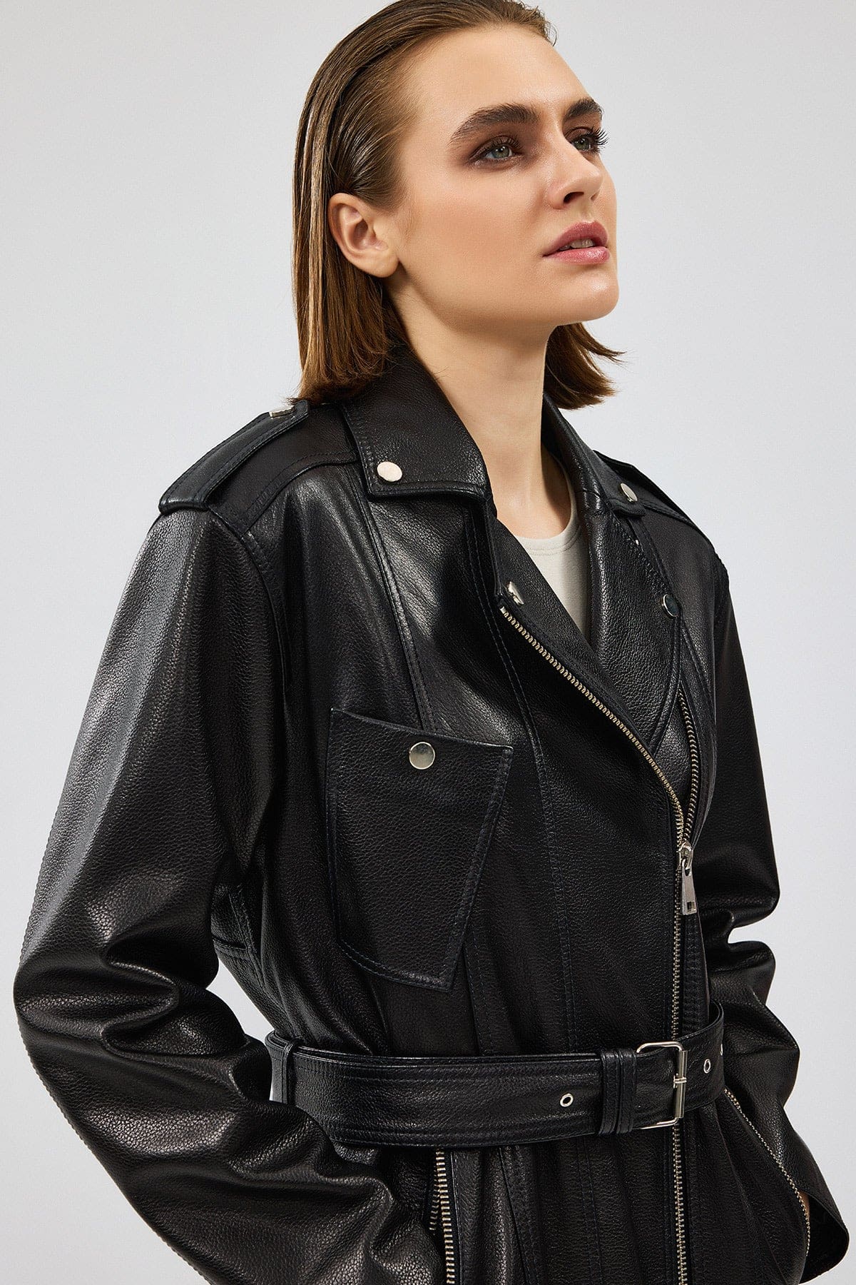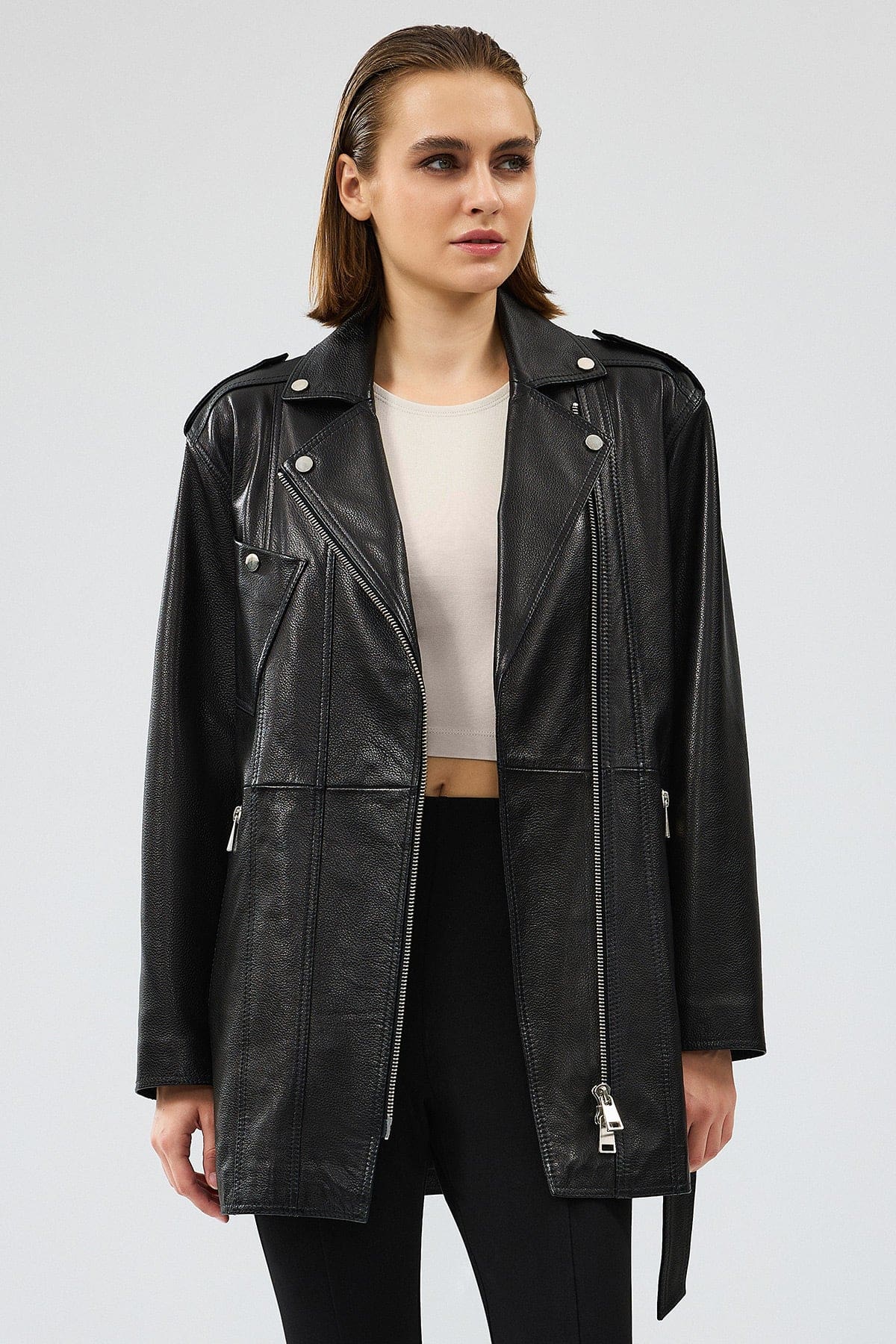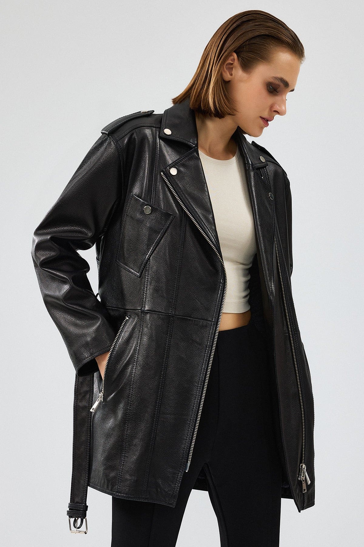 کاپشن چرم مشکی زنانه ونوس دری مد