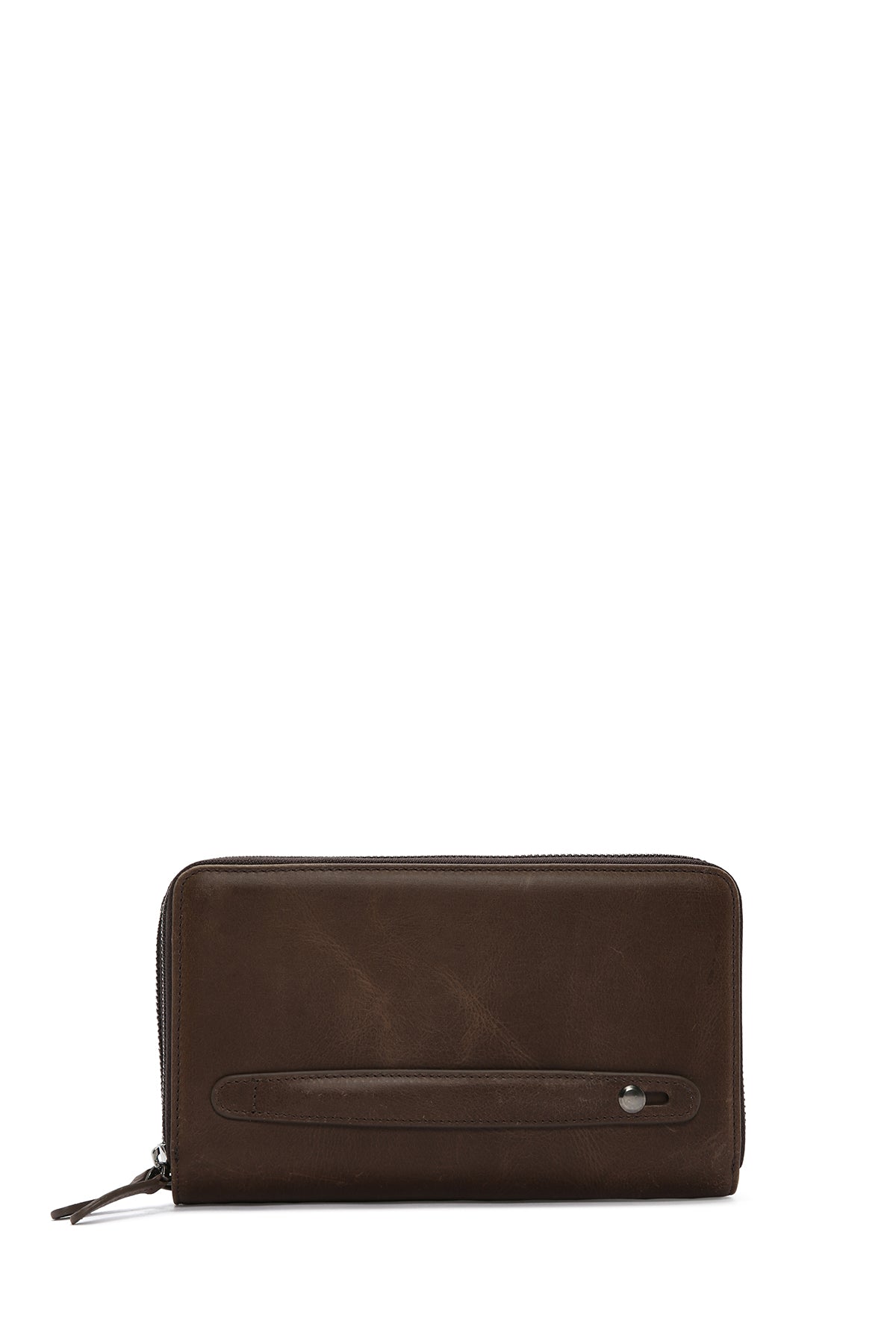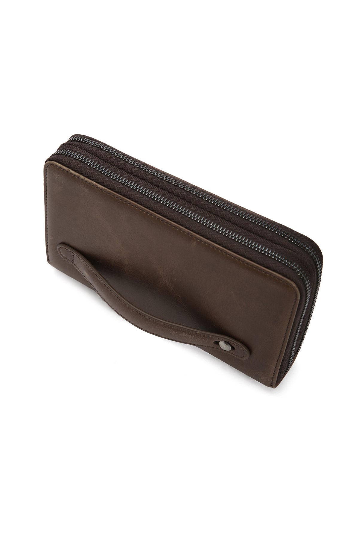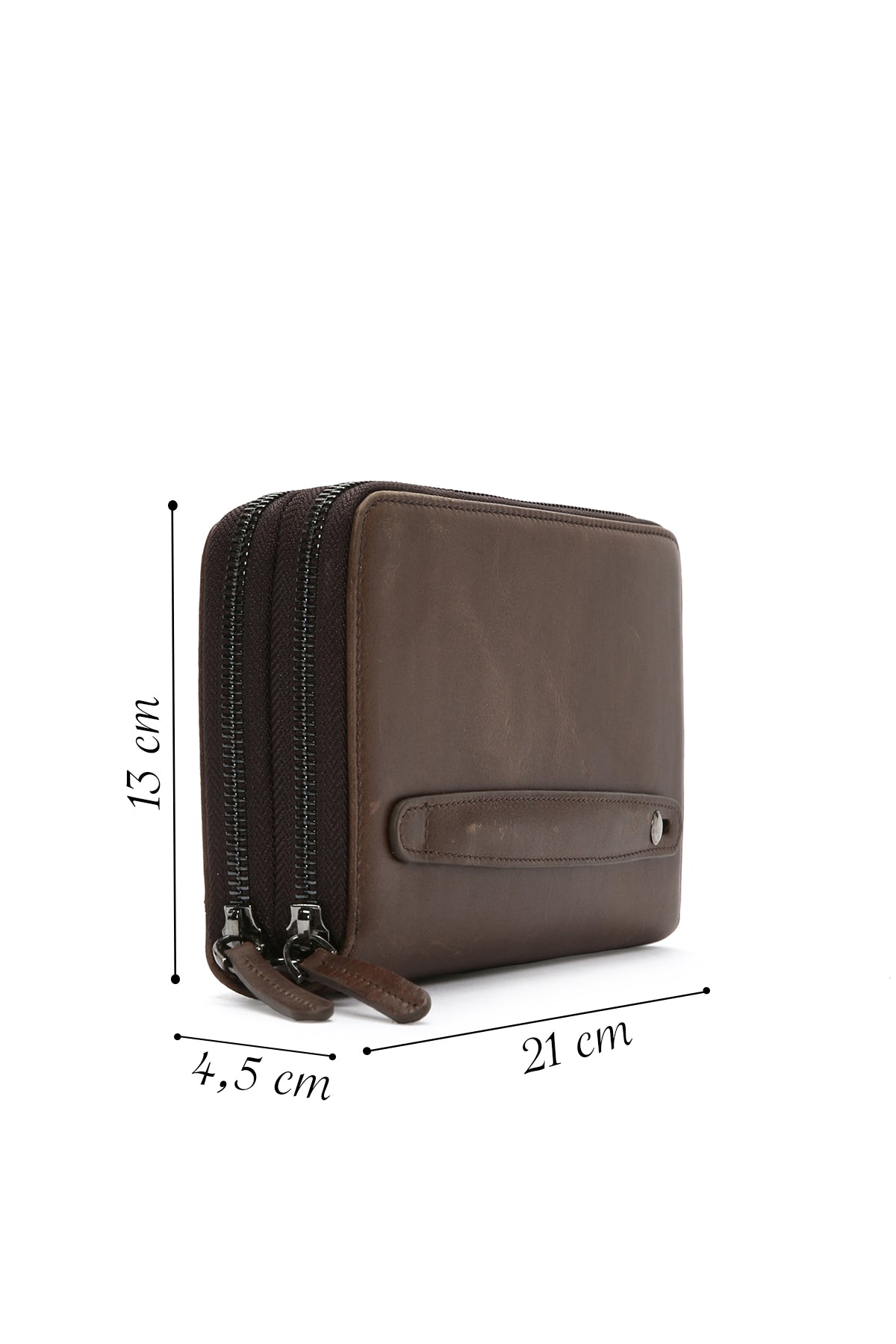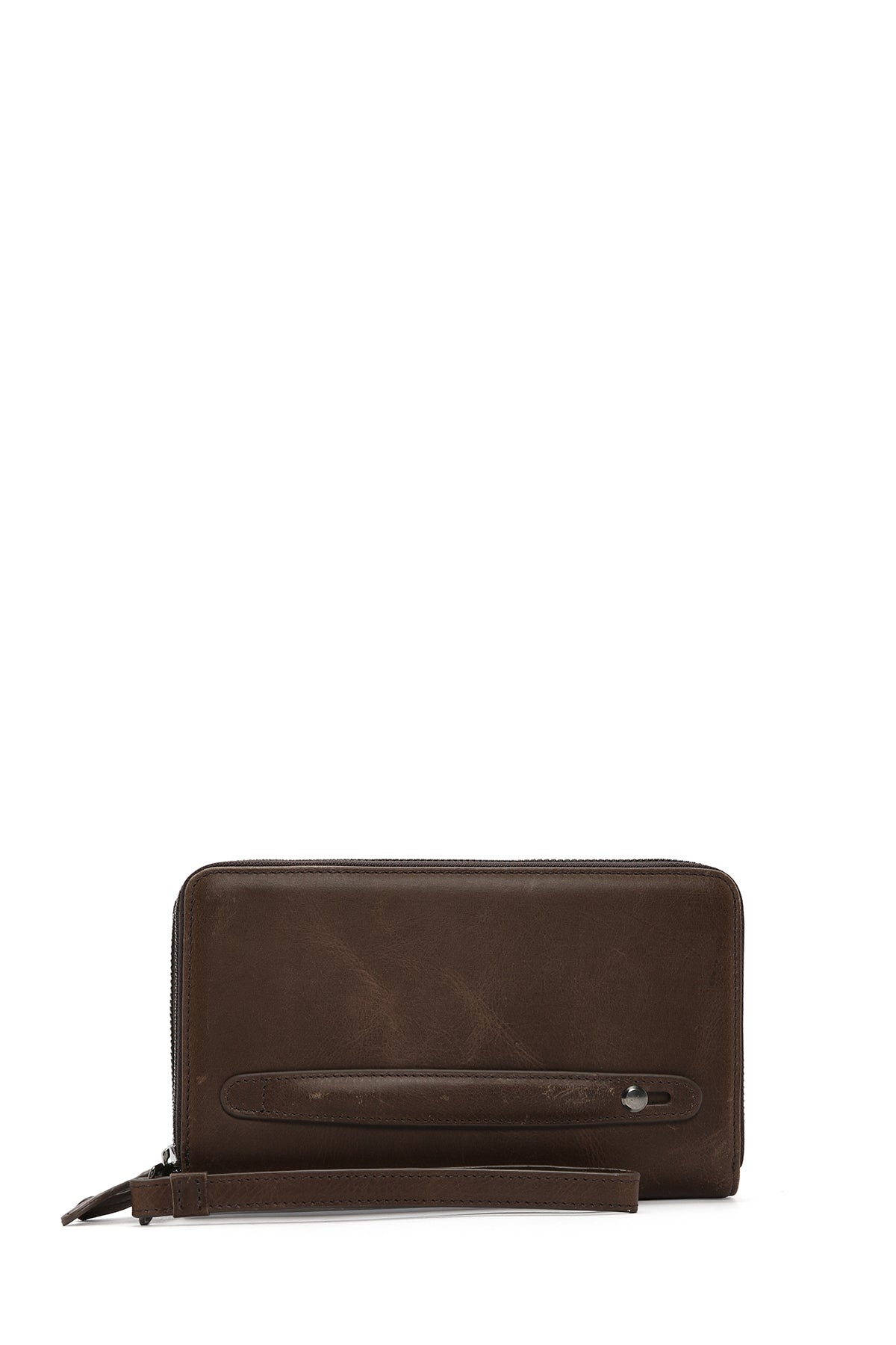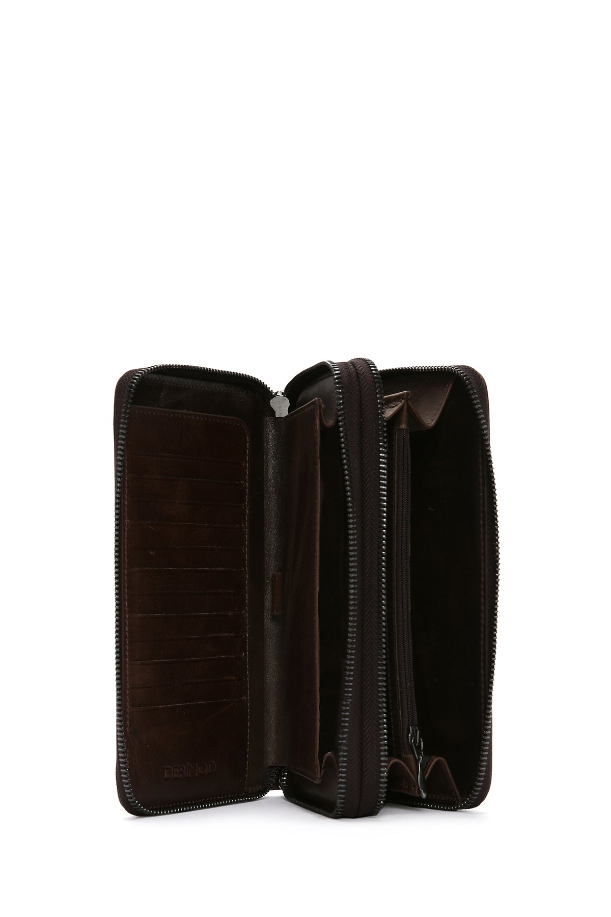Erkek Kahverengi Telefon Bölmeli Deri El Çantası