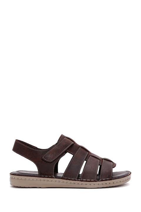 صندل راحتی مردانه چرم قهوه ای دری مد