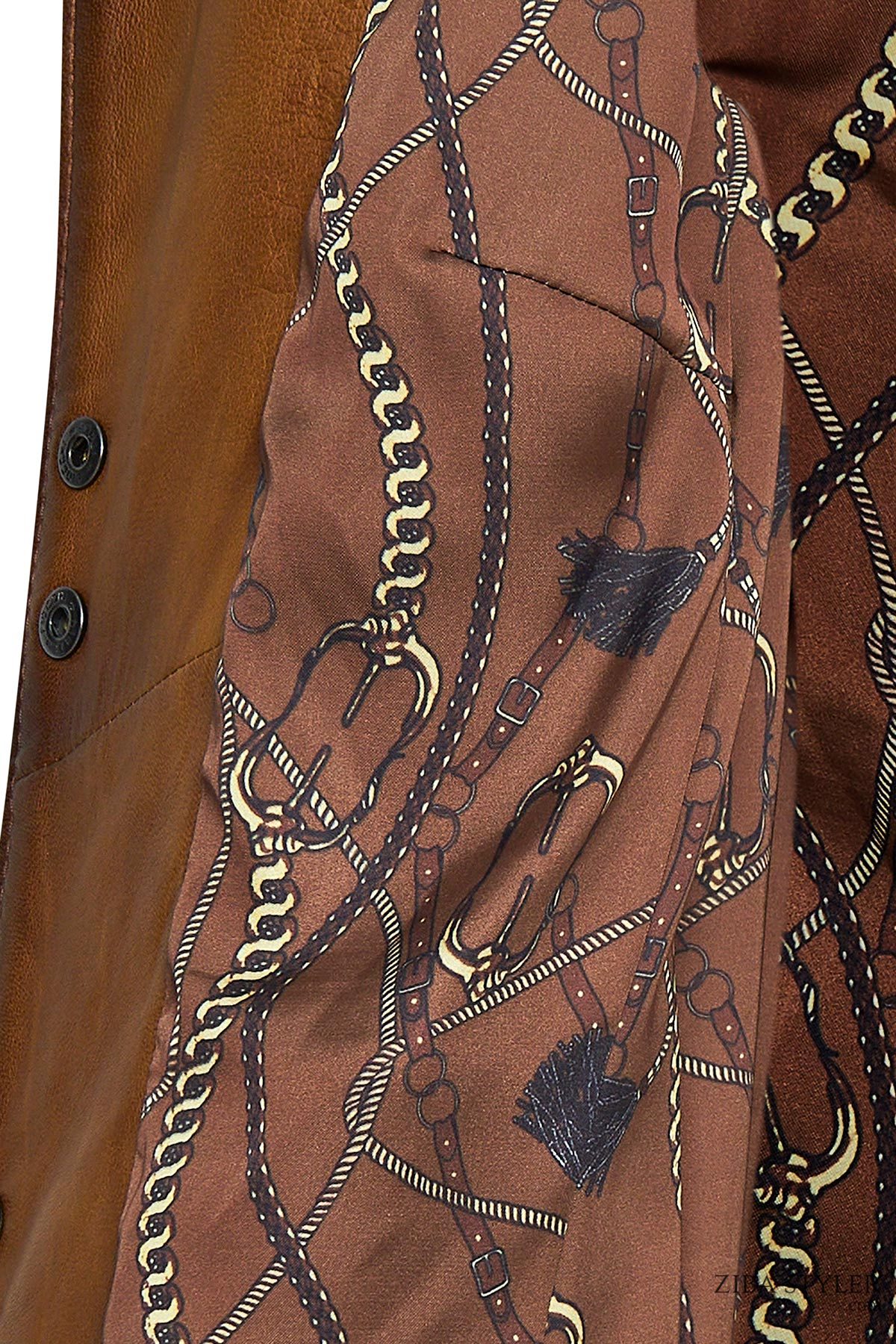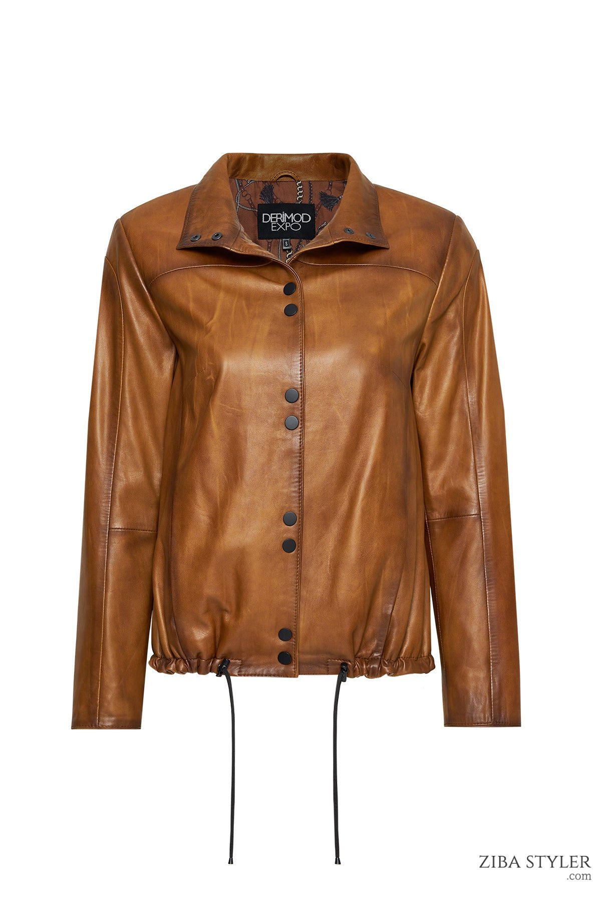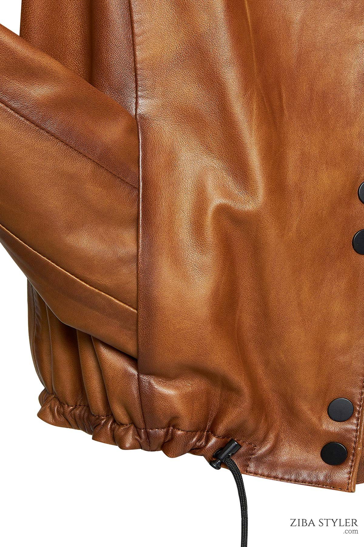 کت چرم یقه استند قهوه ای زنانه لوپز دری مد