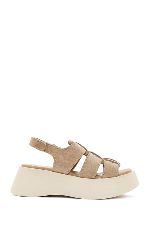 Kadın Kahverengi Kalın Tabanlı Süet Deri Sandalet