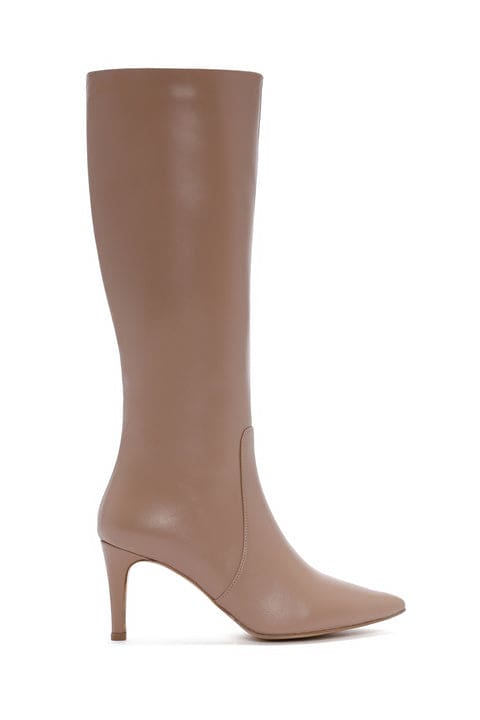چکمه چرم پاشنه نازک شتری زیپ دار دری مد