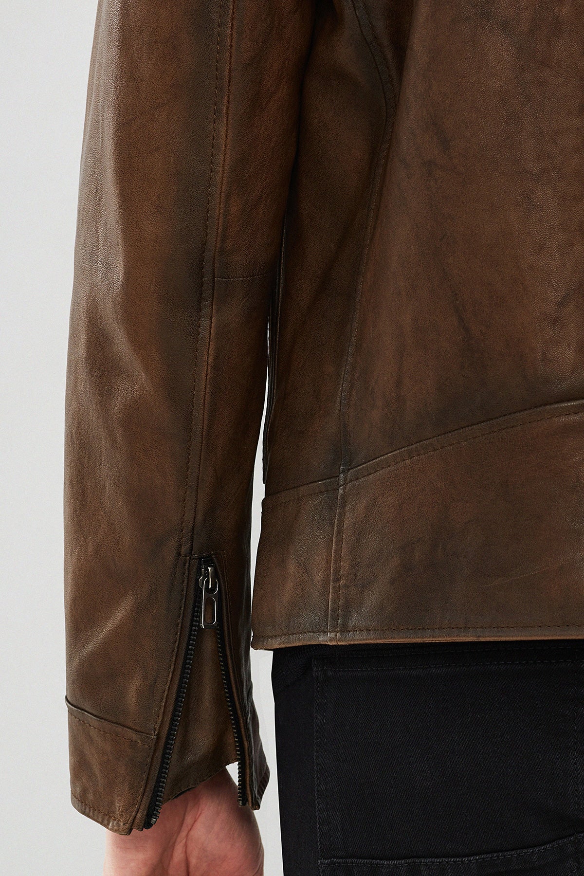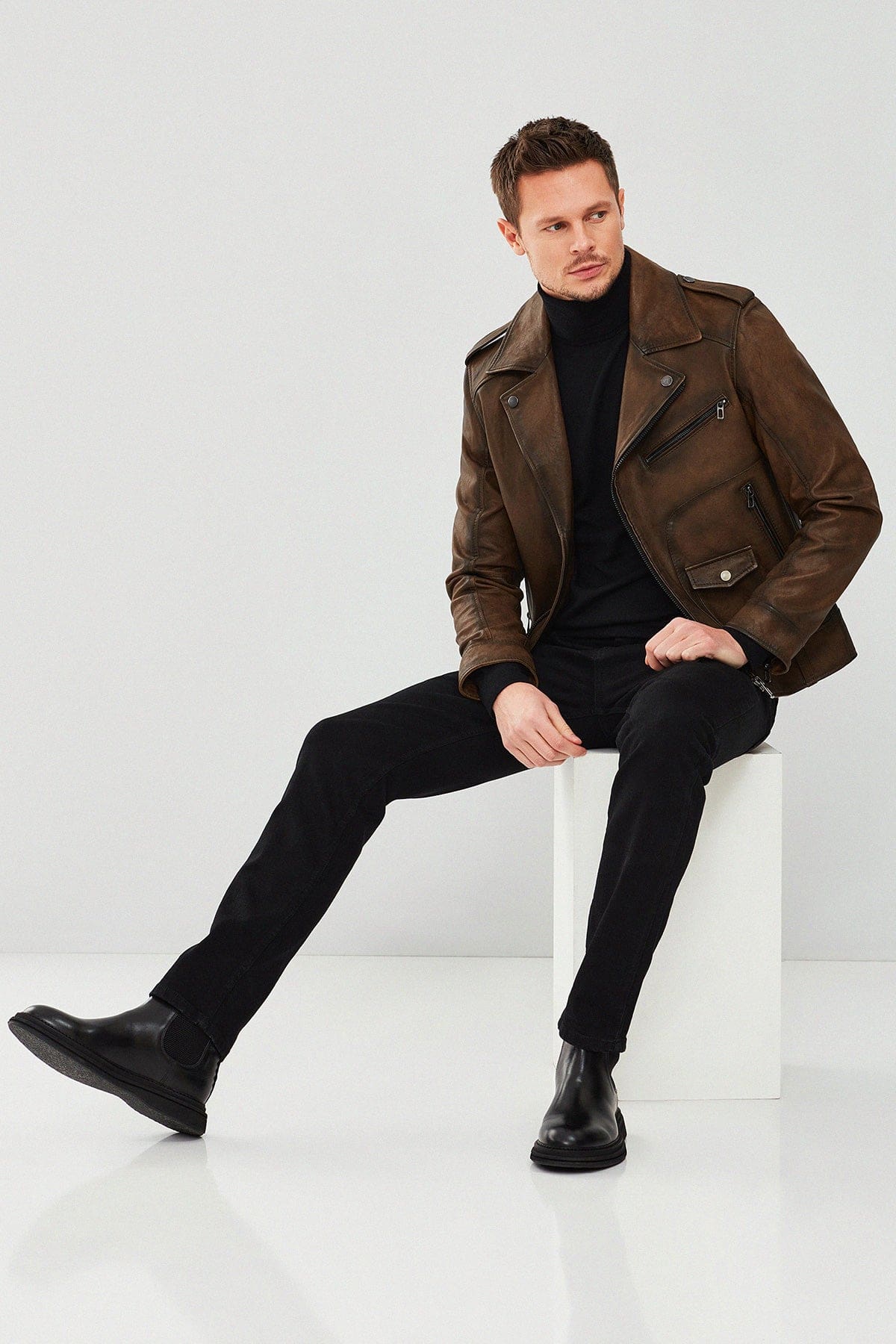 کت چرم موتورسواری قهوه ای مردانه Carter دری مد