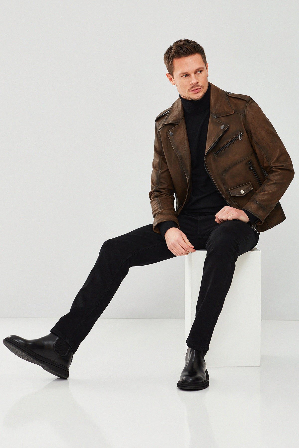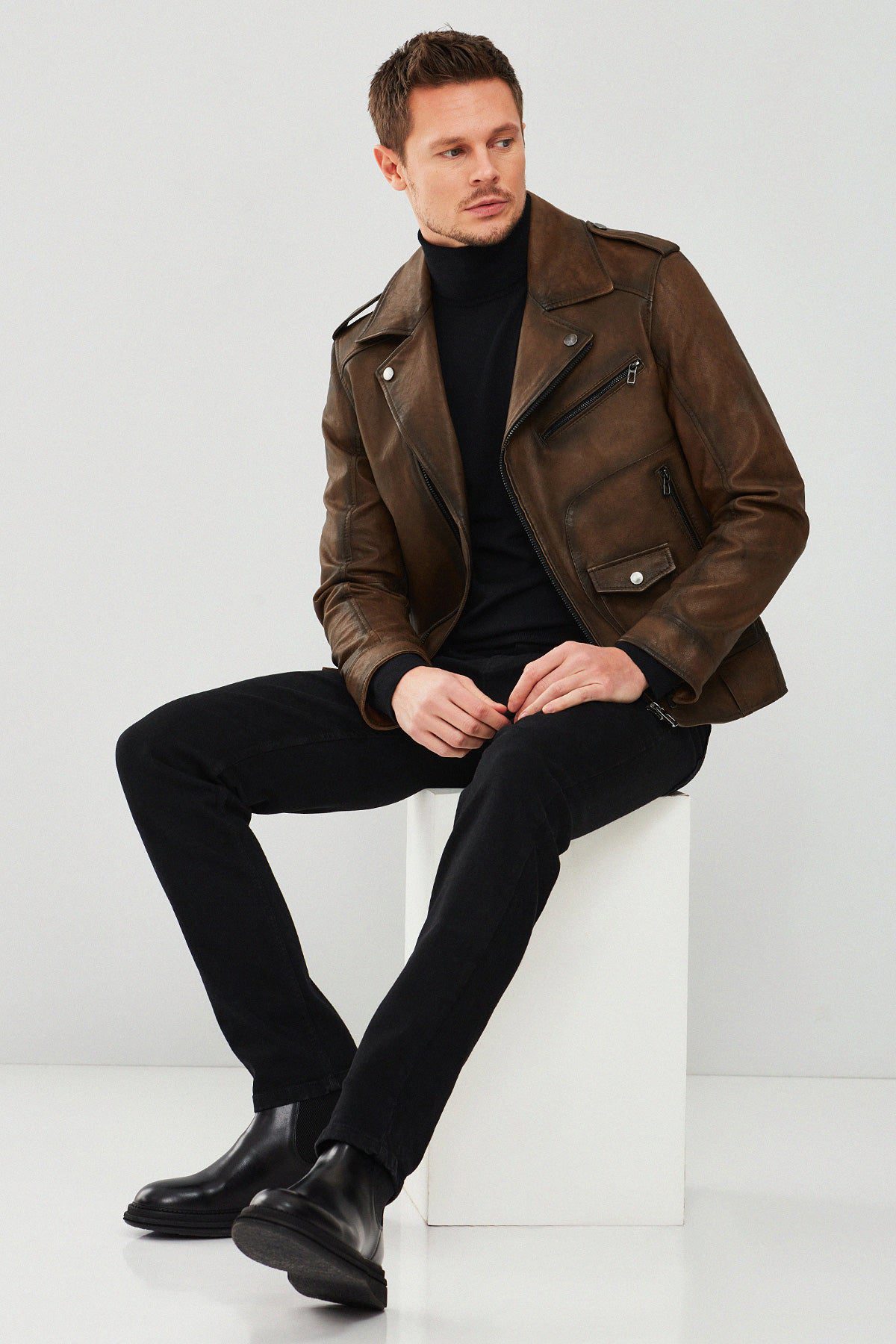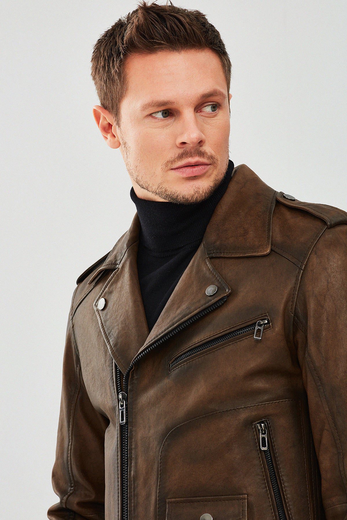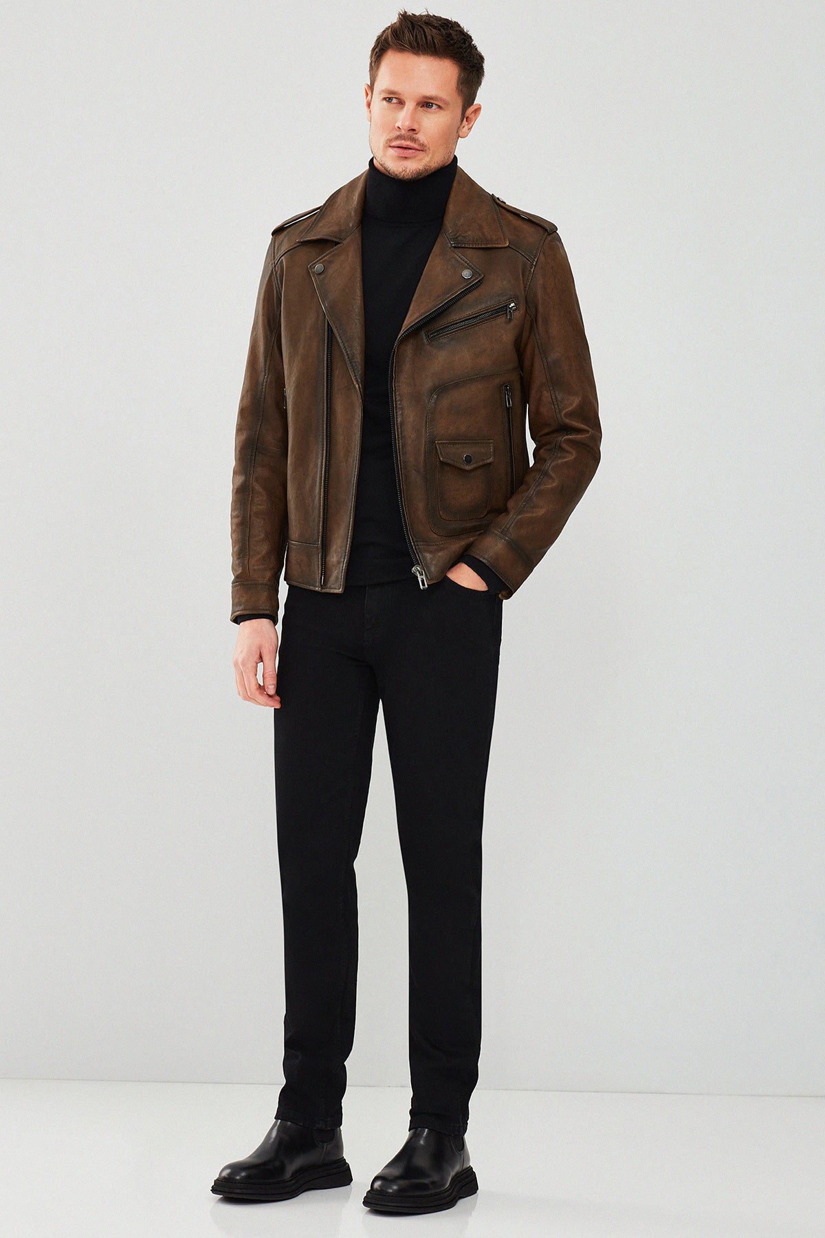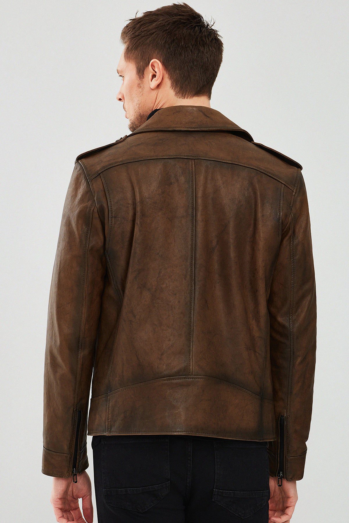Carter Erkek Kahverengi Biker Deri Mont