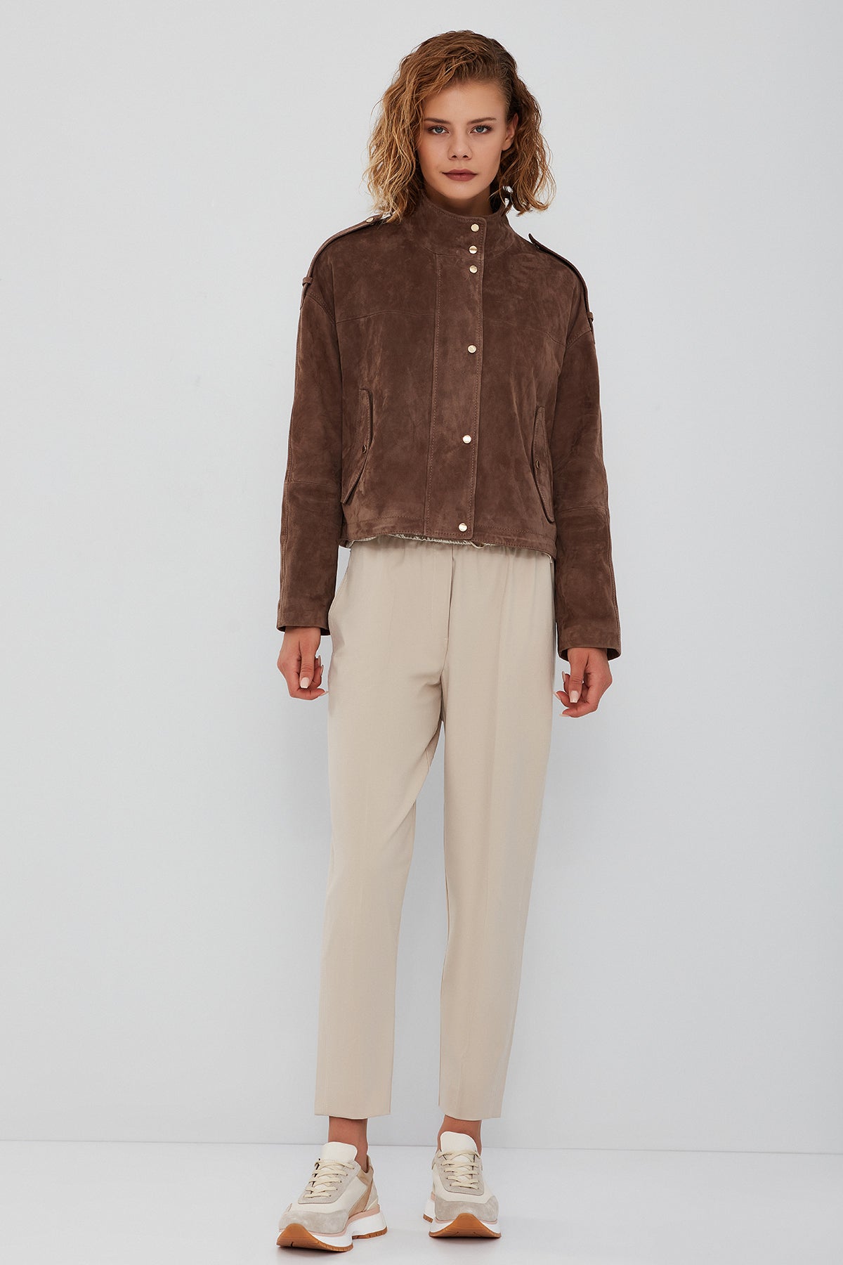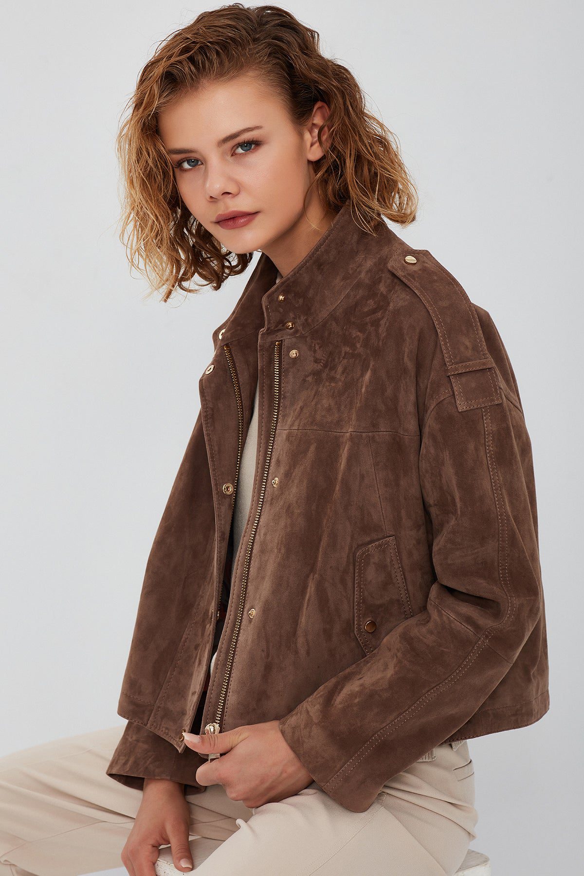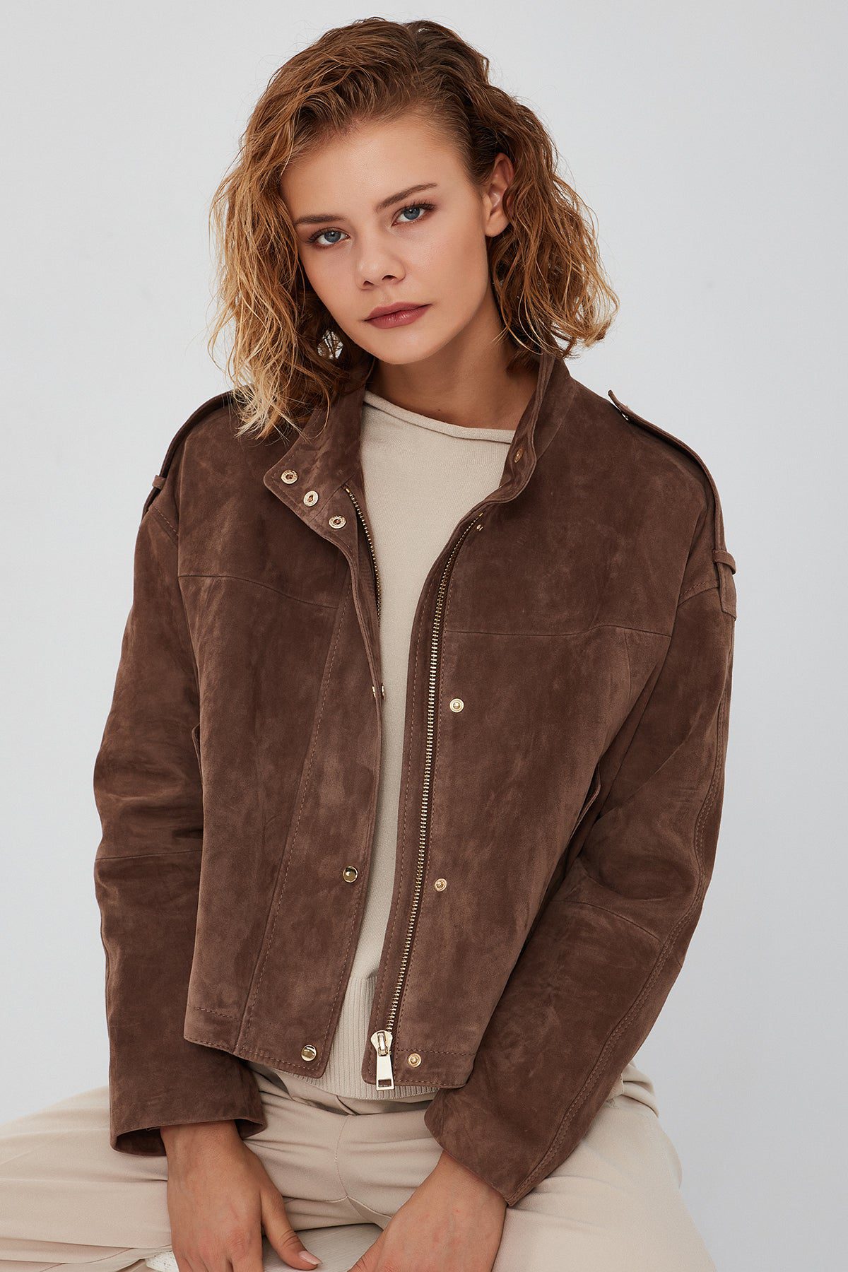 Cassy Kadın Vizon Oversize Süet Deri Ceket