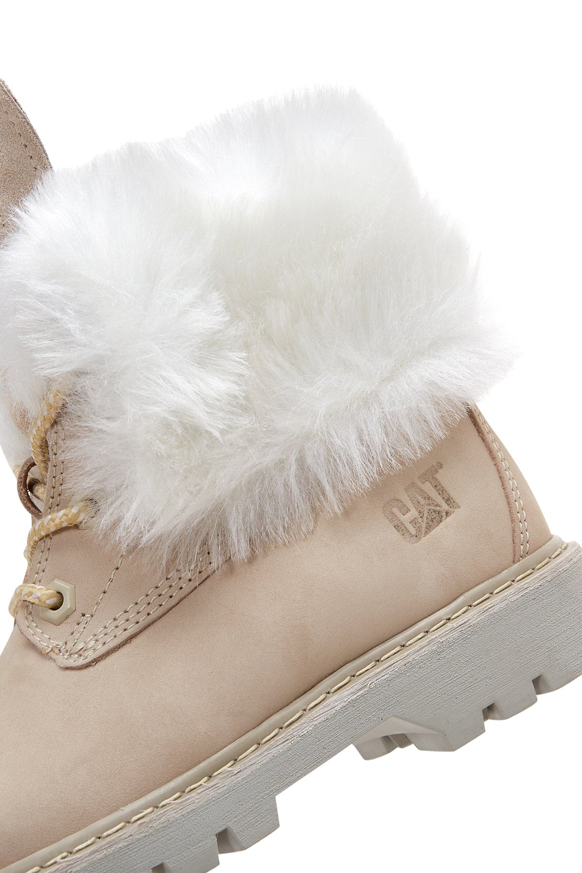 بوت توری چرمی زنانه کاترپیلار بژ خز یوتا