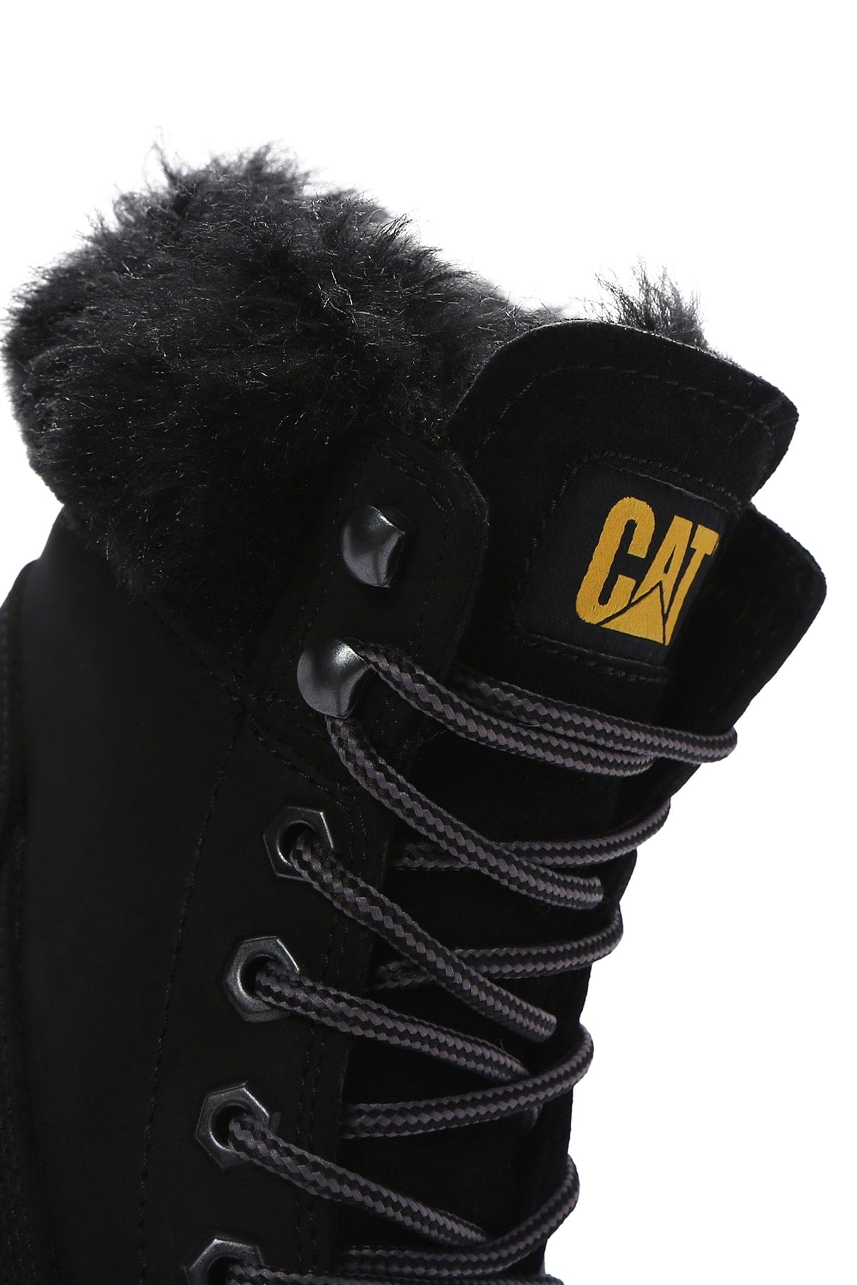 بوت چرمی نبوک زنانه کاترپیلار مشکی پاشنه ضخیم