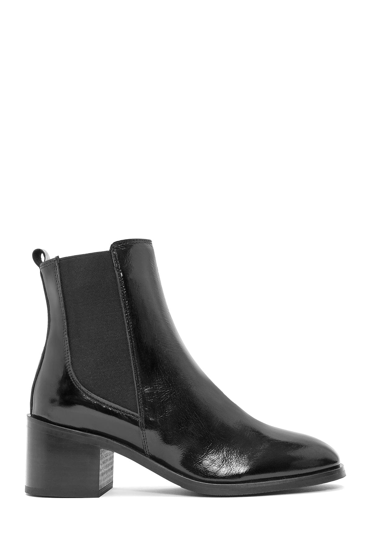 Kadın Siyah Kalın Topuklu Rugan Deri Chelsea Bot