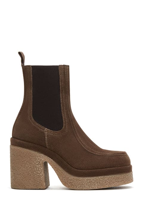 Kadın Ceviz Kalın Topuklu Süet Deri Chelsea Bot