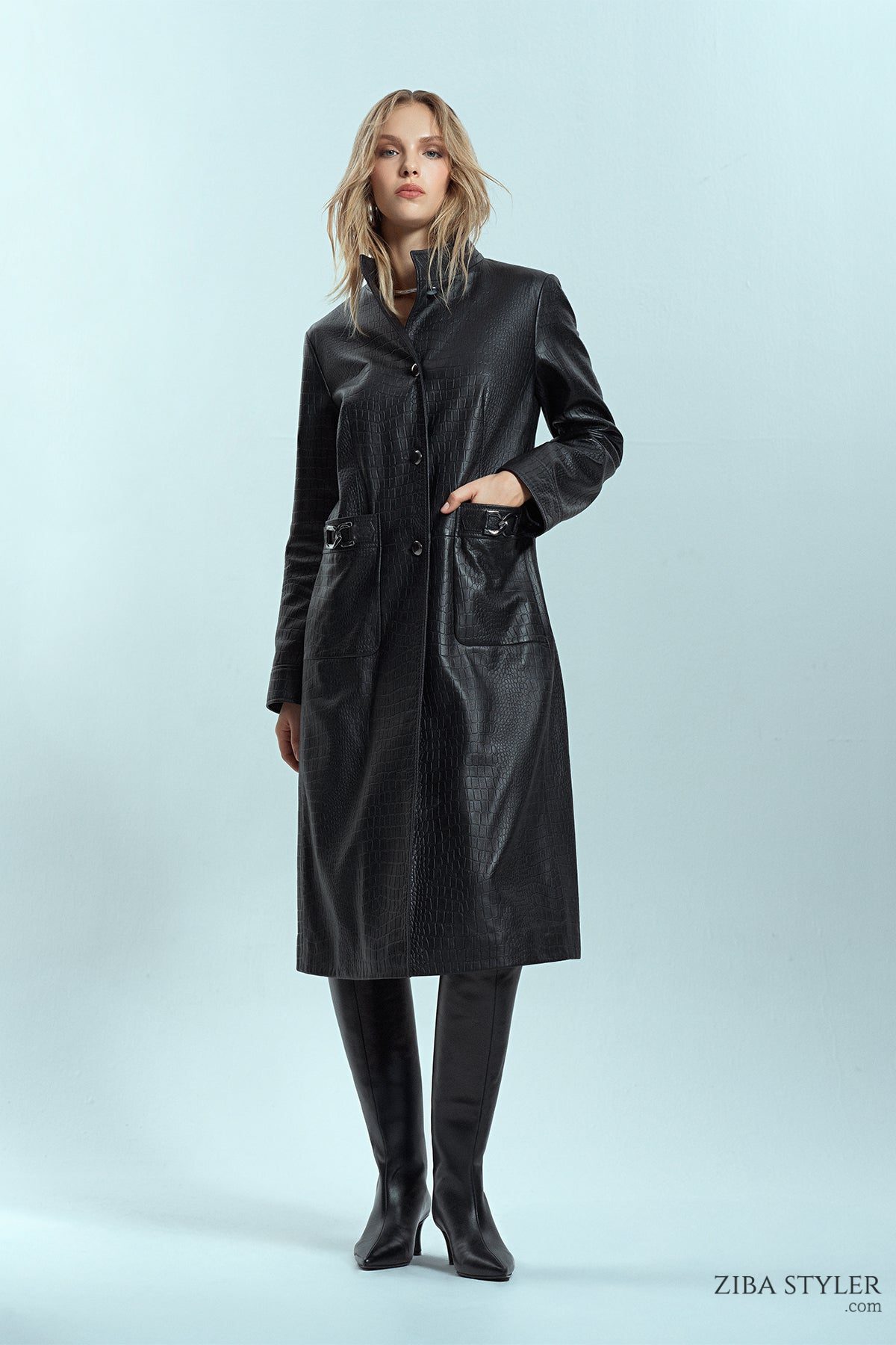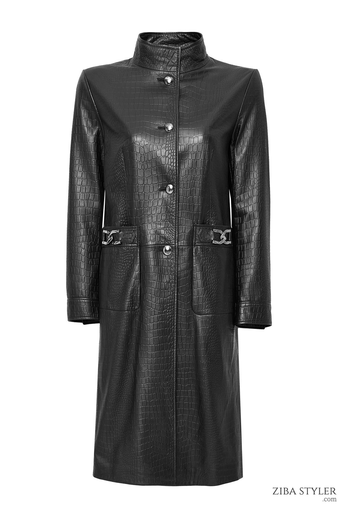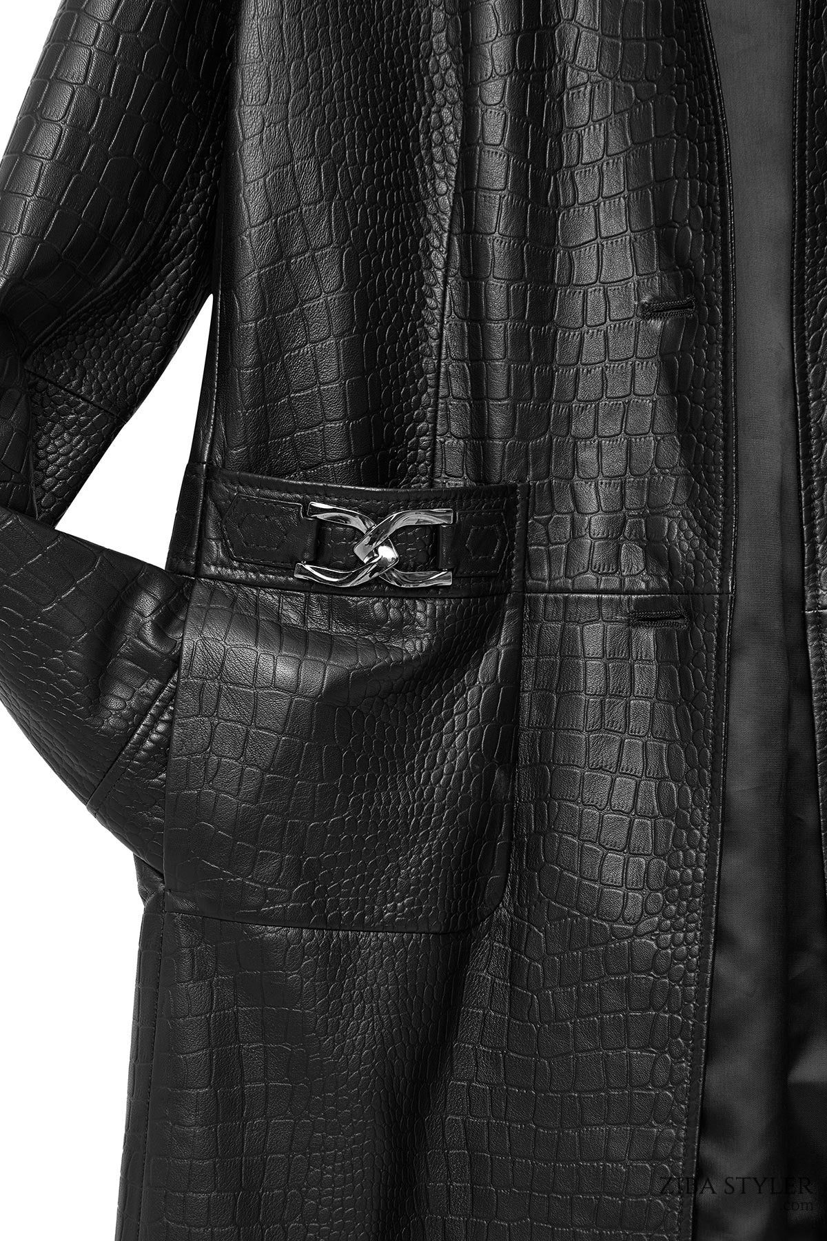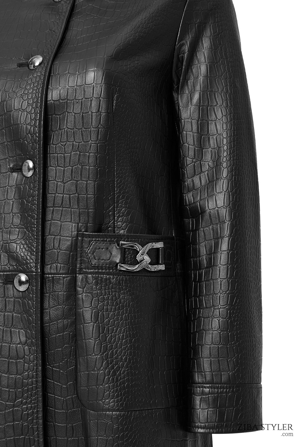 کت چرم مشکی طرح کروکودیلی زنانه کولت دری مد