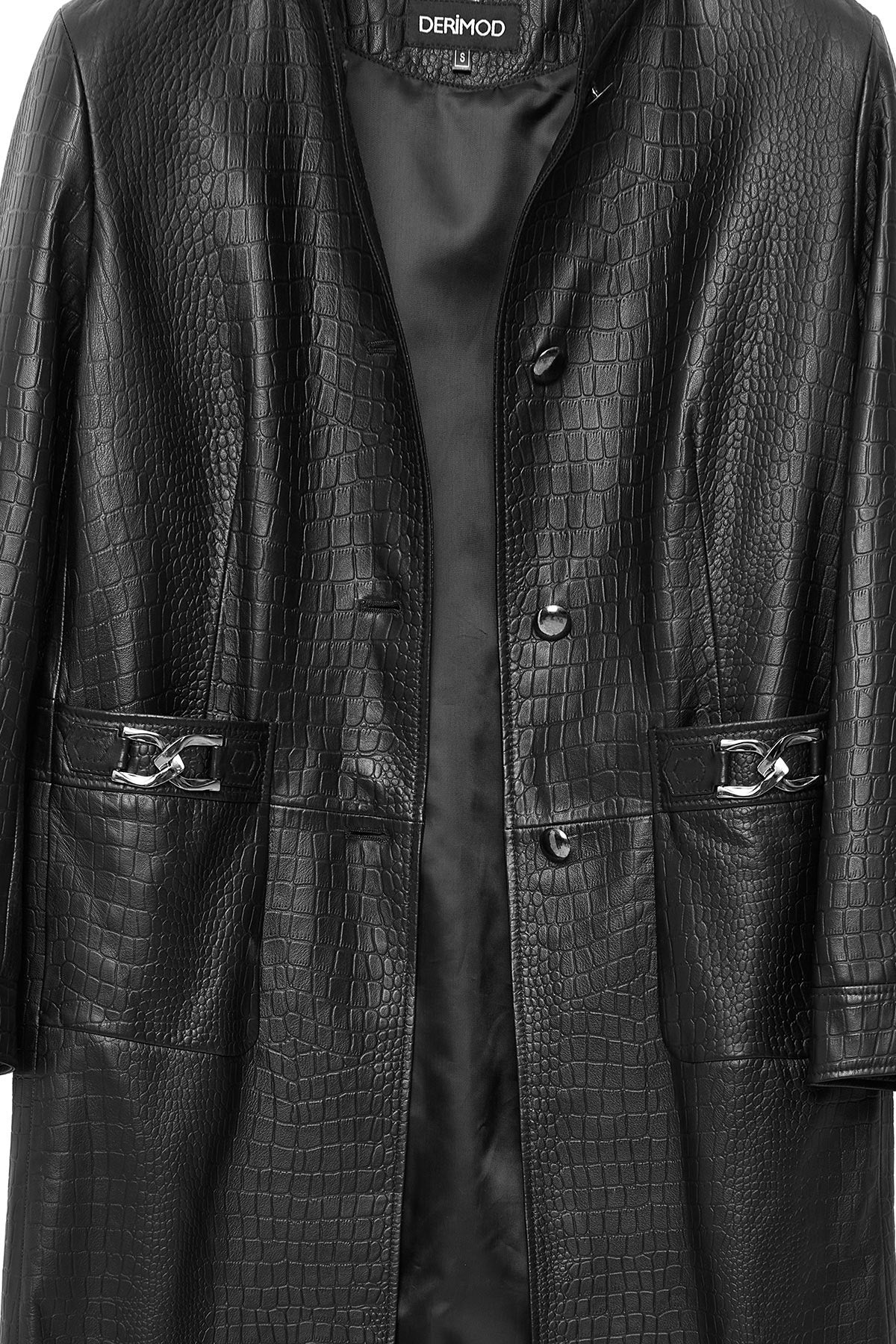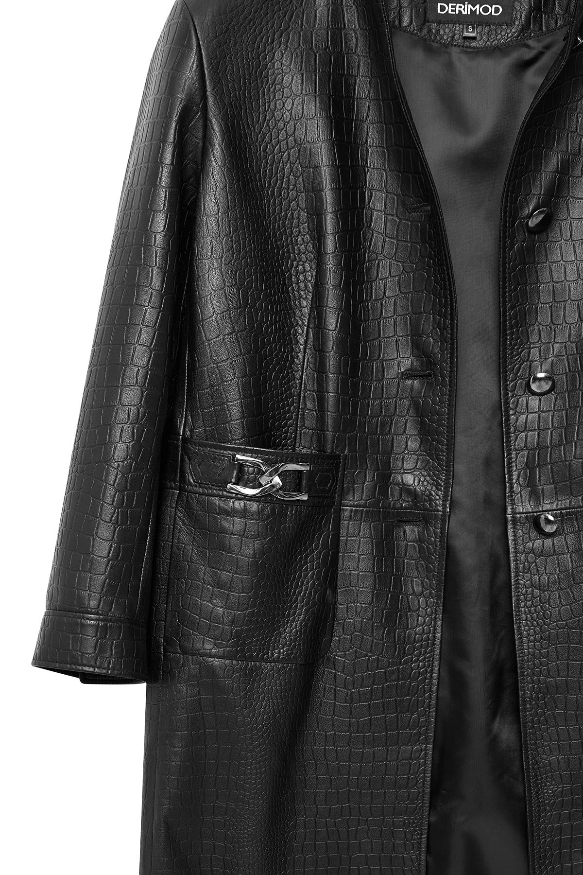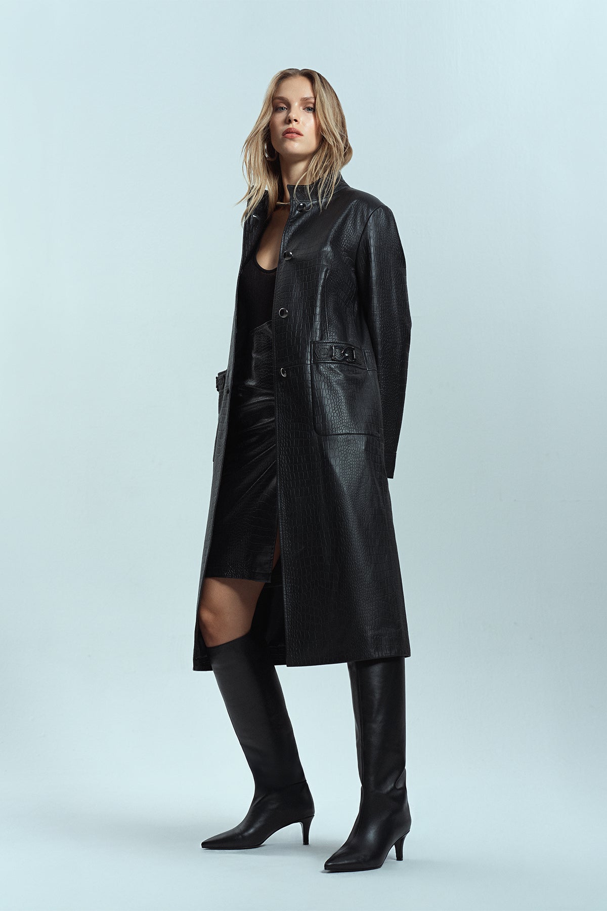 Colette Kadın Siyah Kroko Desenli Deri Pardösü