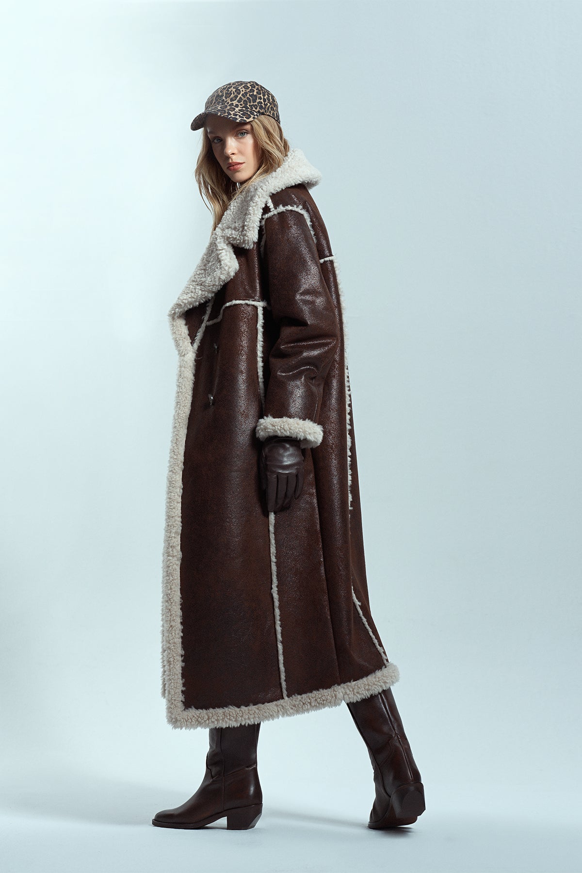 Colorado Kadın Kahverengi Kruvaze Yaka Teddy Pardösü