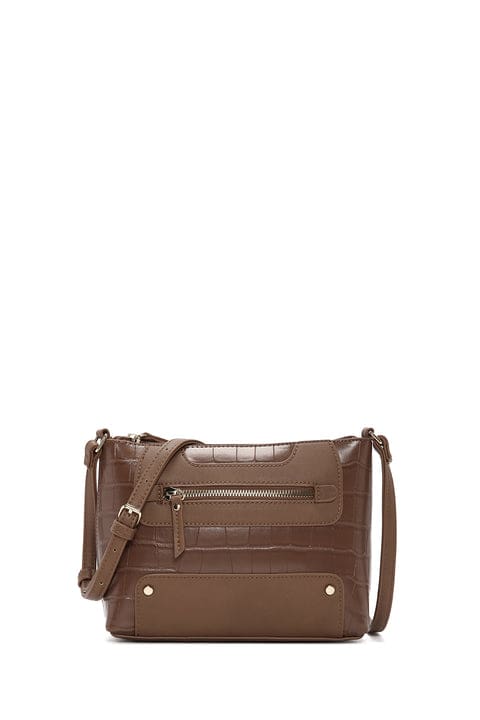 Kadın Taba Uzun Askılı Kroko Desenli Çapraz Çanta