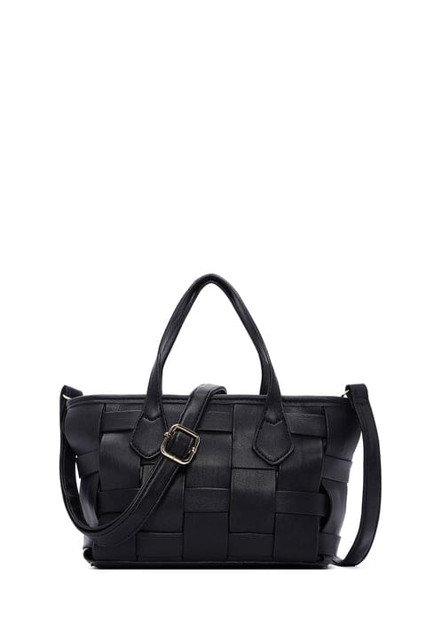 Kadın Siyah Uzun Askılı Örgü Desenli Çapraz Çanta