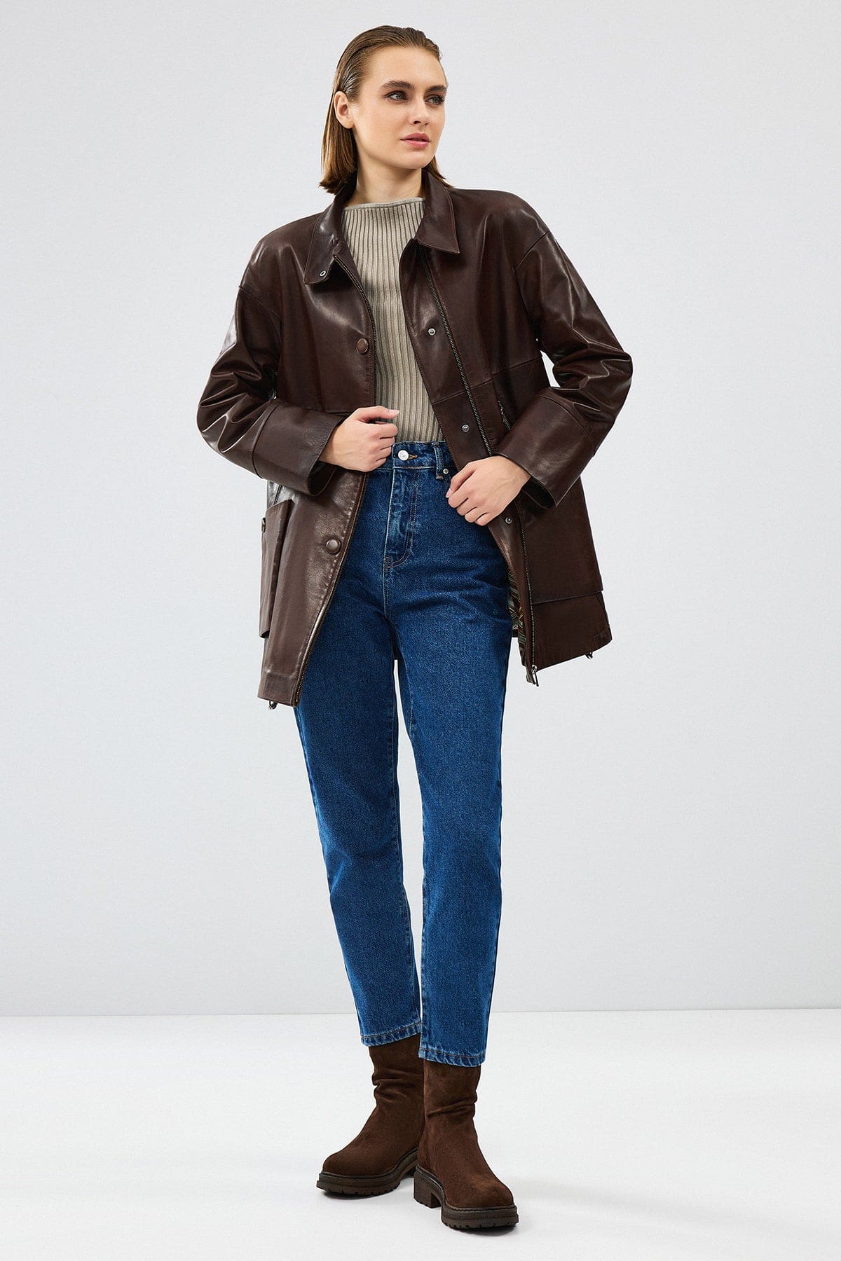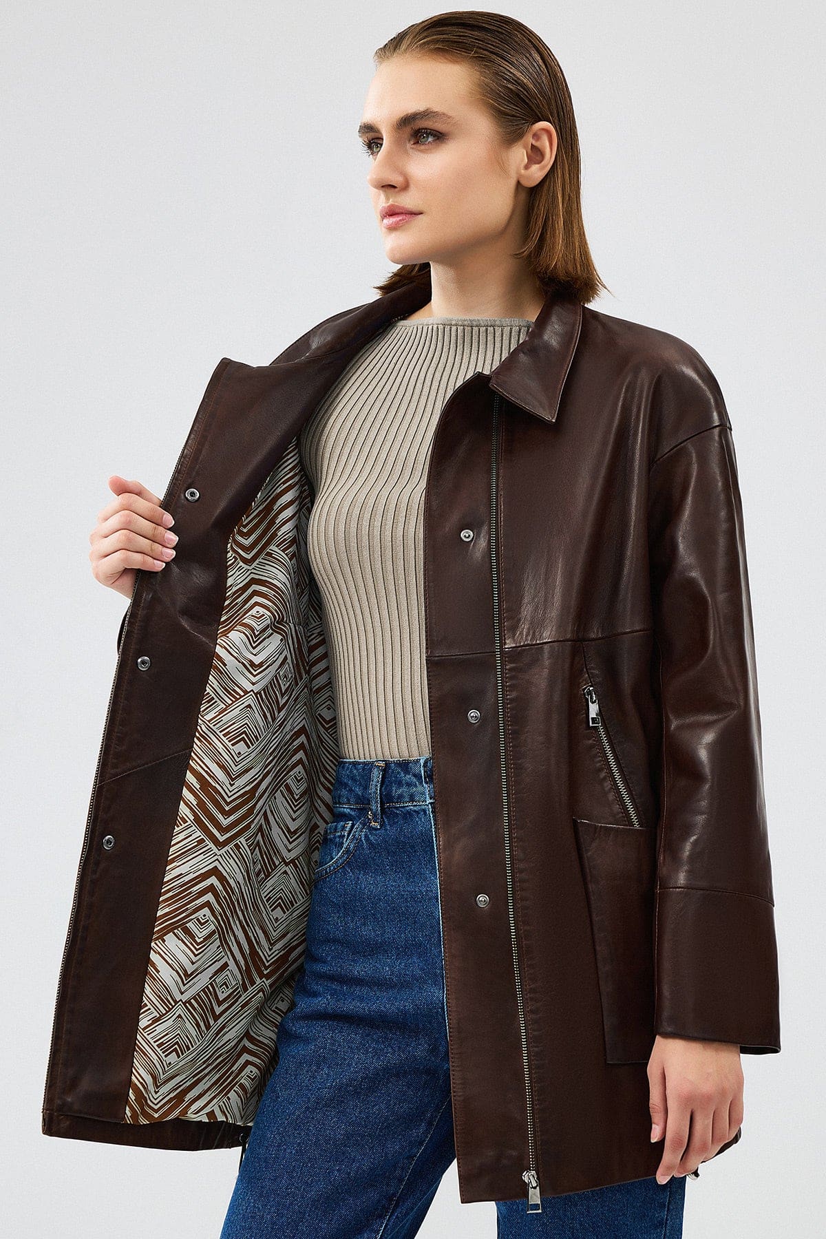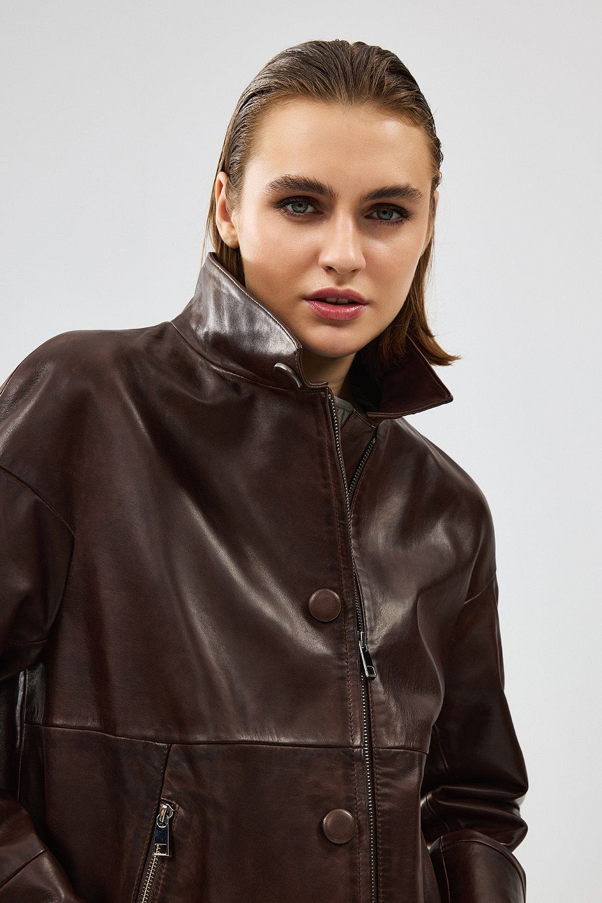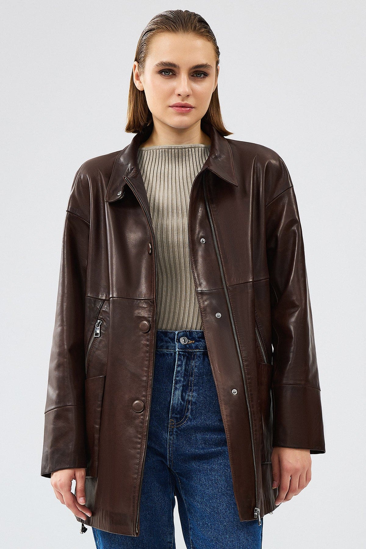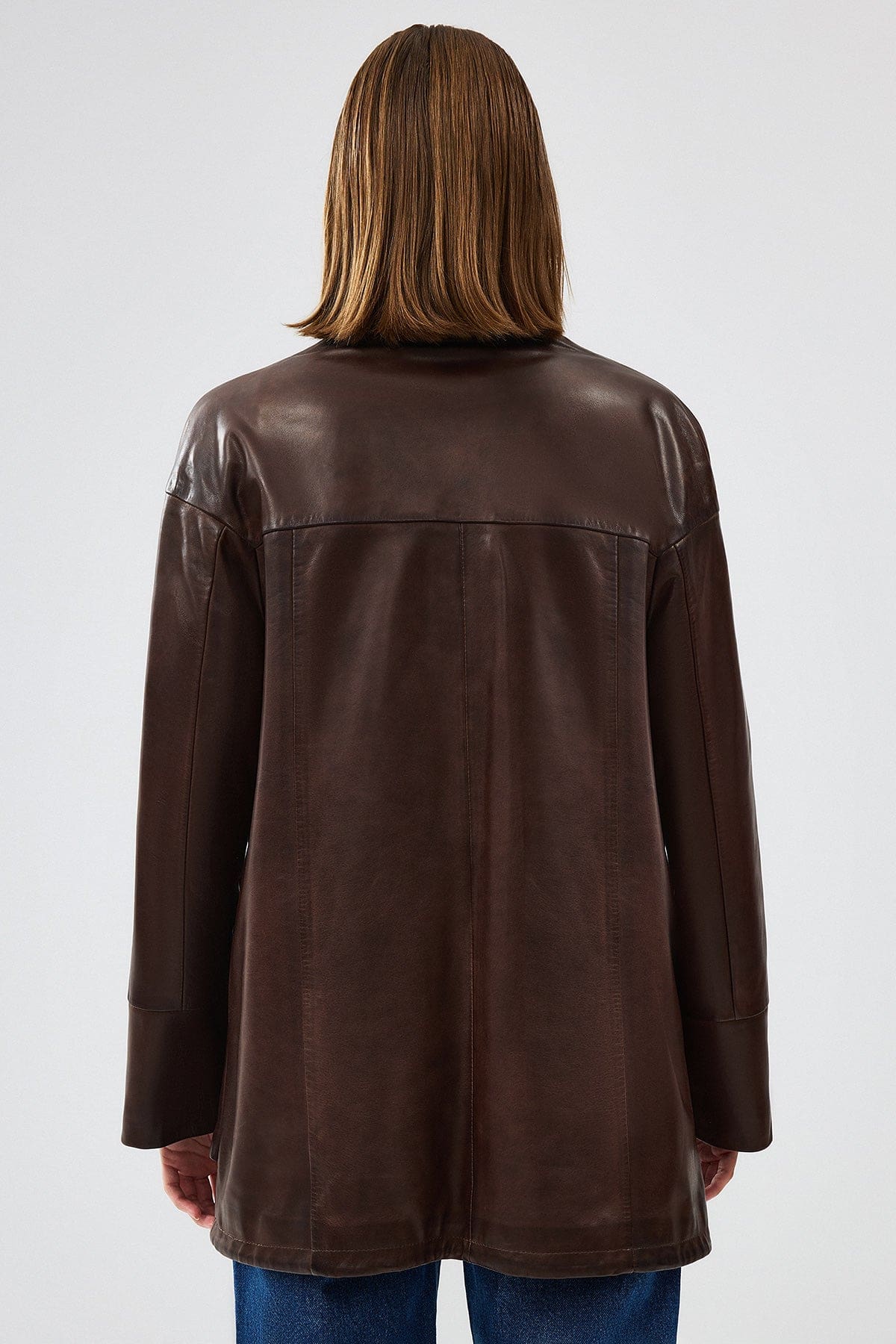 Dalida Kadın Kahverengi Oversize Deri Ceket