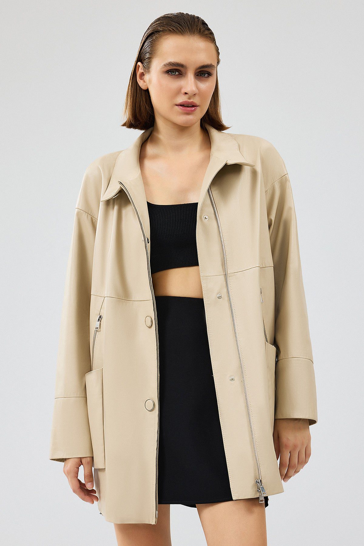 Dalida Kadın Krem Oversize Deri Ceket