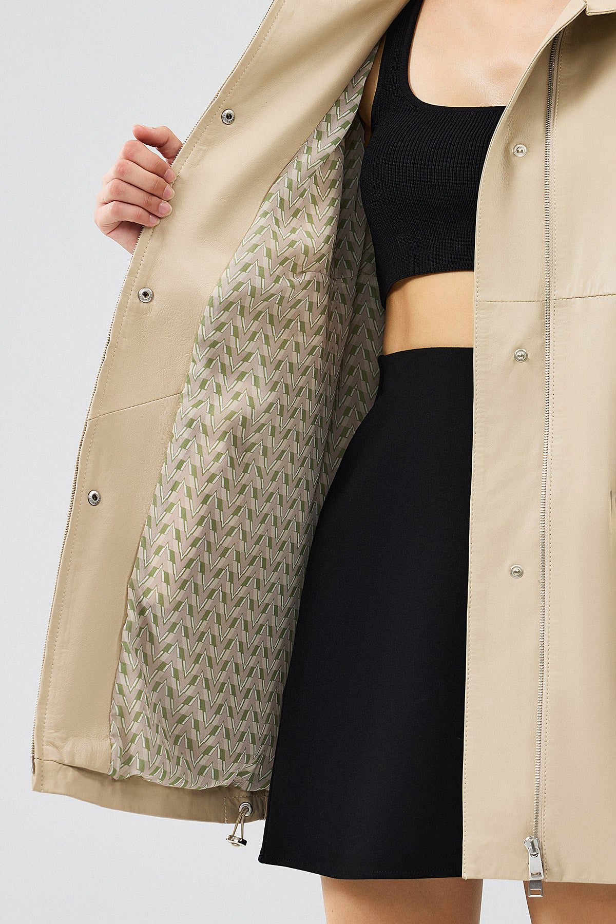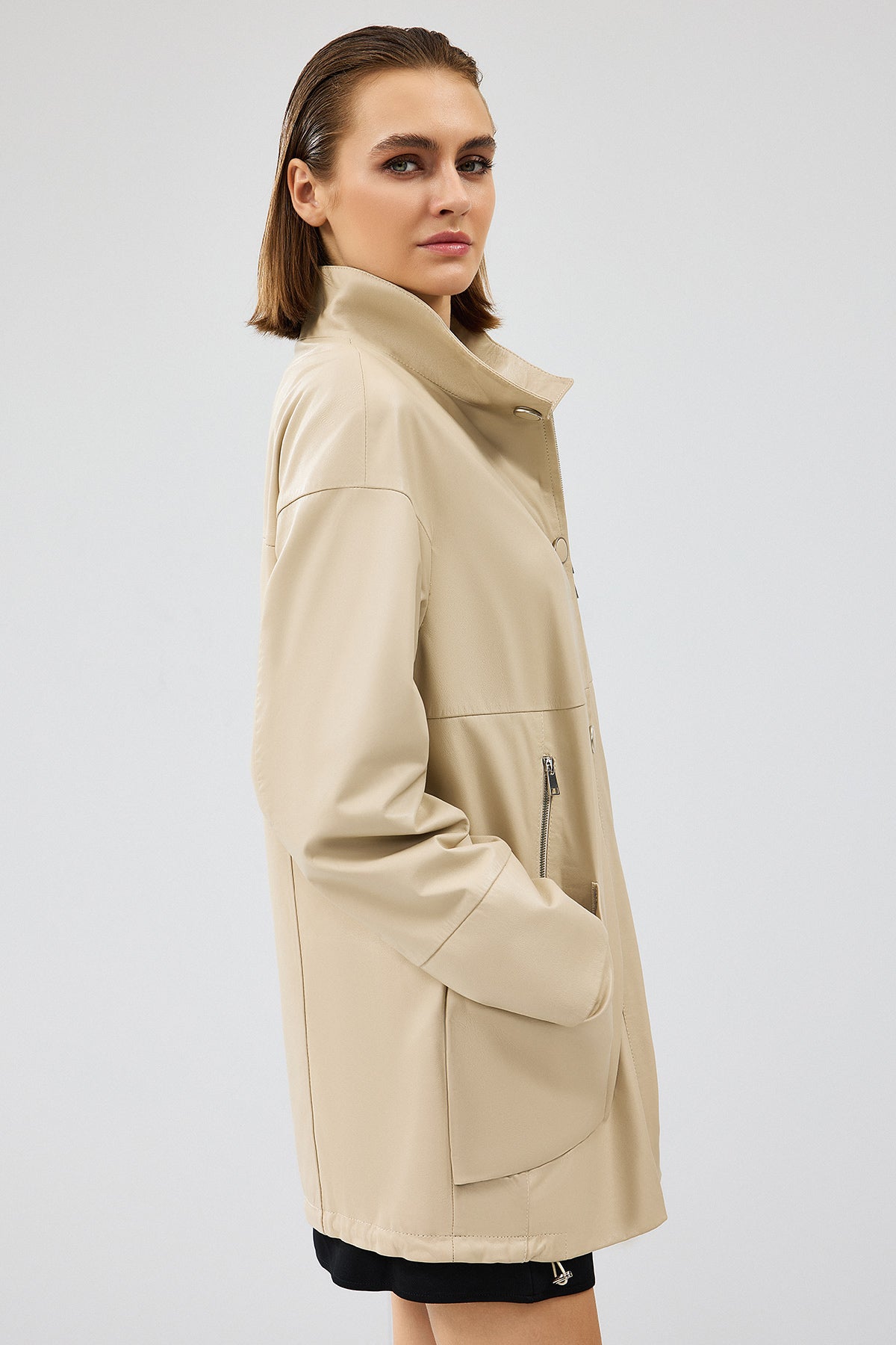 کاپشن چرمی اورسایز کرم زنانه دالیدا دری مد